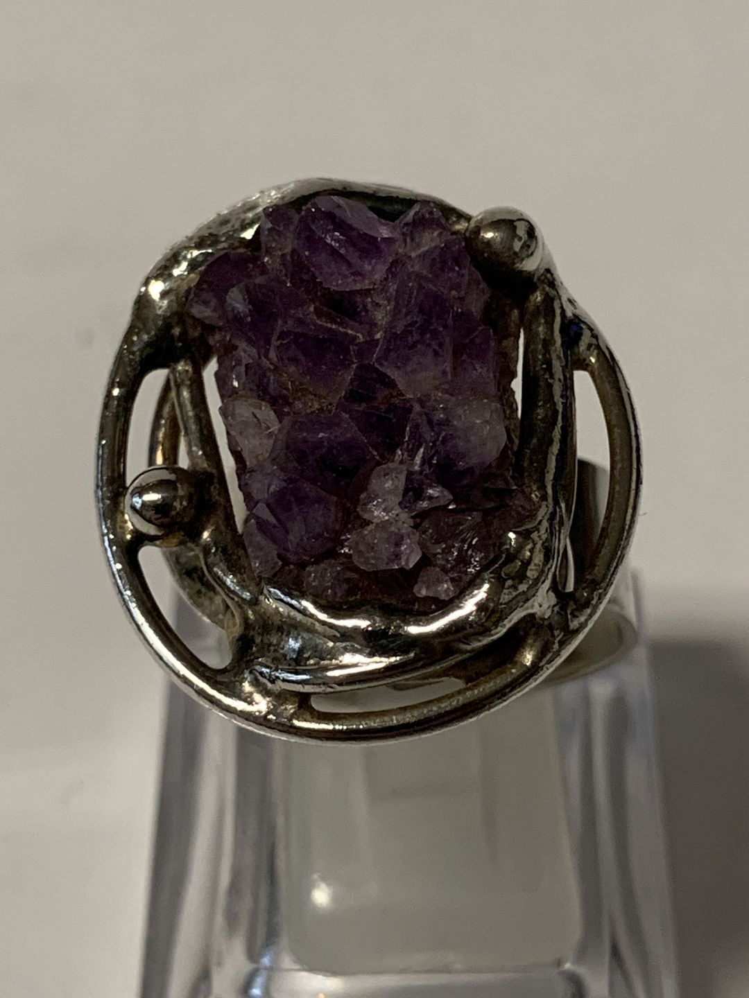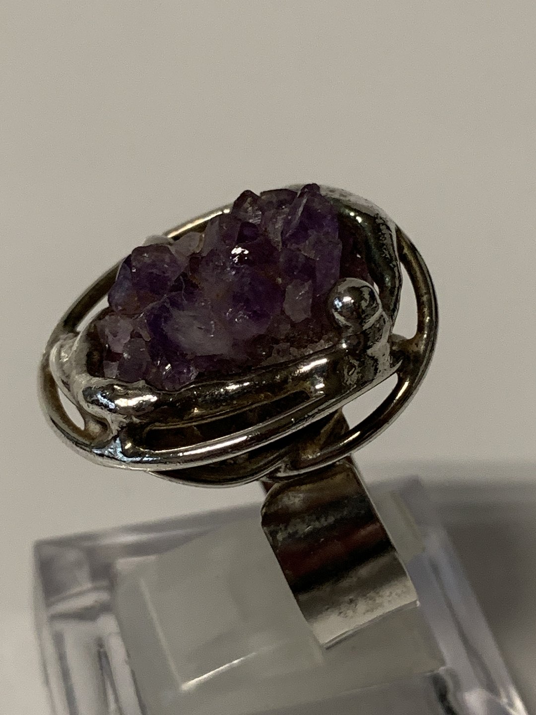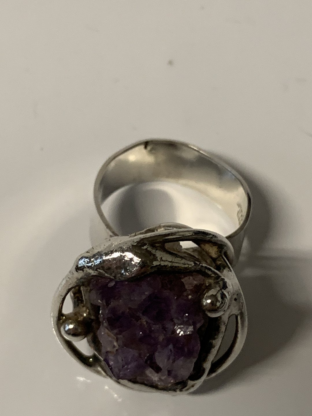 Ladies ring with raw amethysts.