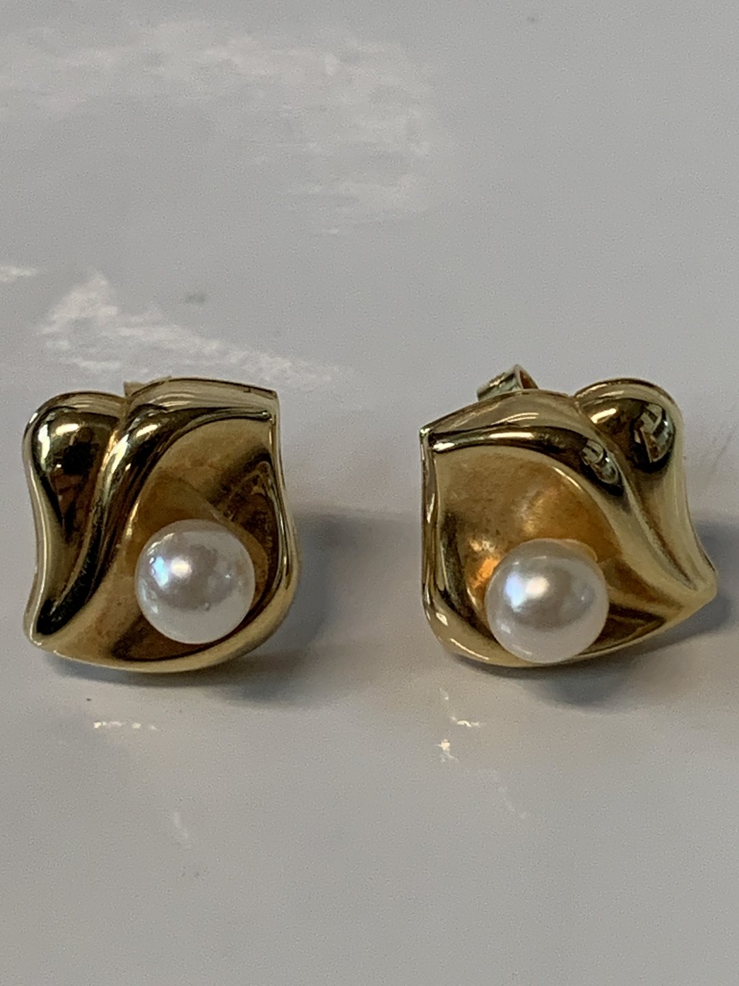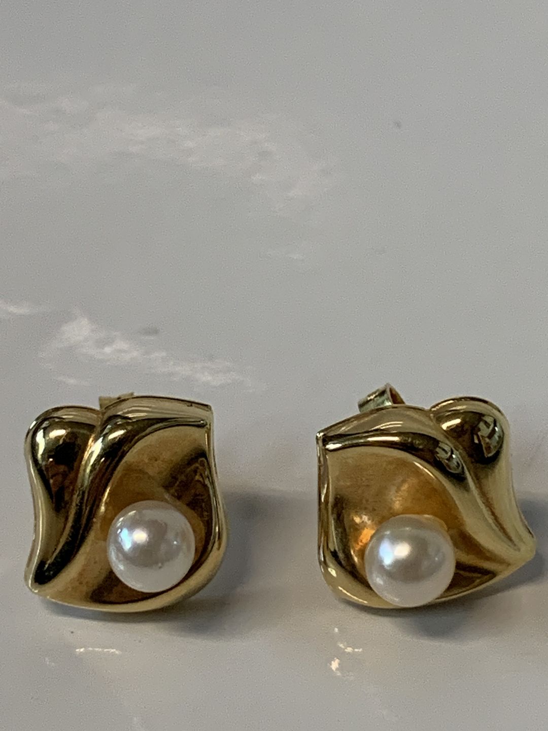 14 karat guld Øreringe med Perle. Stemplet HS 585. Bredde 1 cm. Længde 1 cm. Pæn og velholdt. Smykket tjekket af guldsmed Varen findes ikke fysisk i butikken, kontakt os for fremvisning.