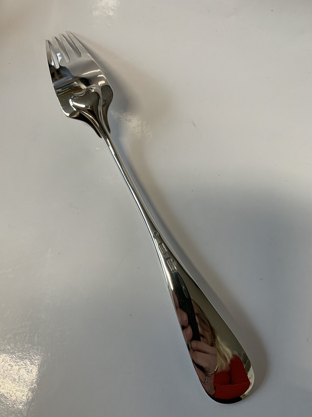 Middagsgaffel, Ida, A. Michelsen, Sterlingsølv. Længde 20,4 cm. Designet af Ole Hagen. Stemplet Anton Michelsen Copenhagen, Sterling Danmark. Velholdt bestik, poleret og pakket i pose