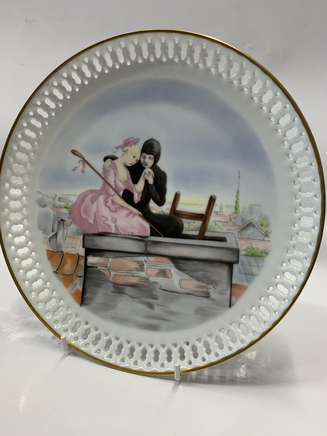 Hans Christian Andersen platte Hyrdinden og Skorstensfejeren fra Bing og Grøndahl. Dekorationsnummer 8841 / 628. Diameter 21 cm. 1.Sortering. Perfekt stand.