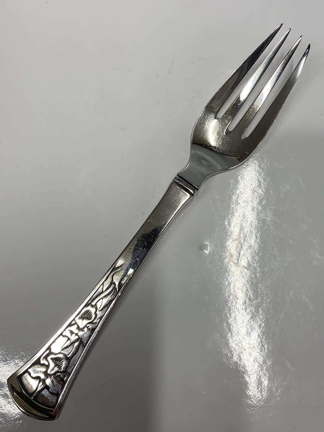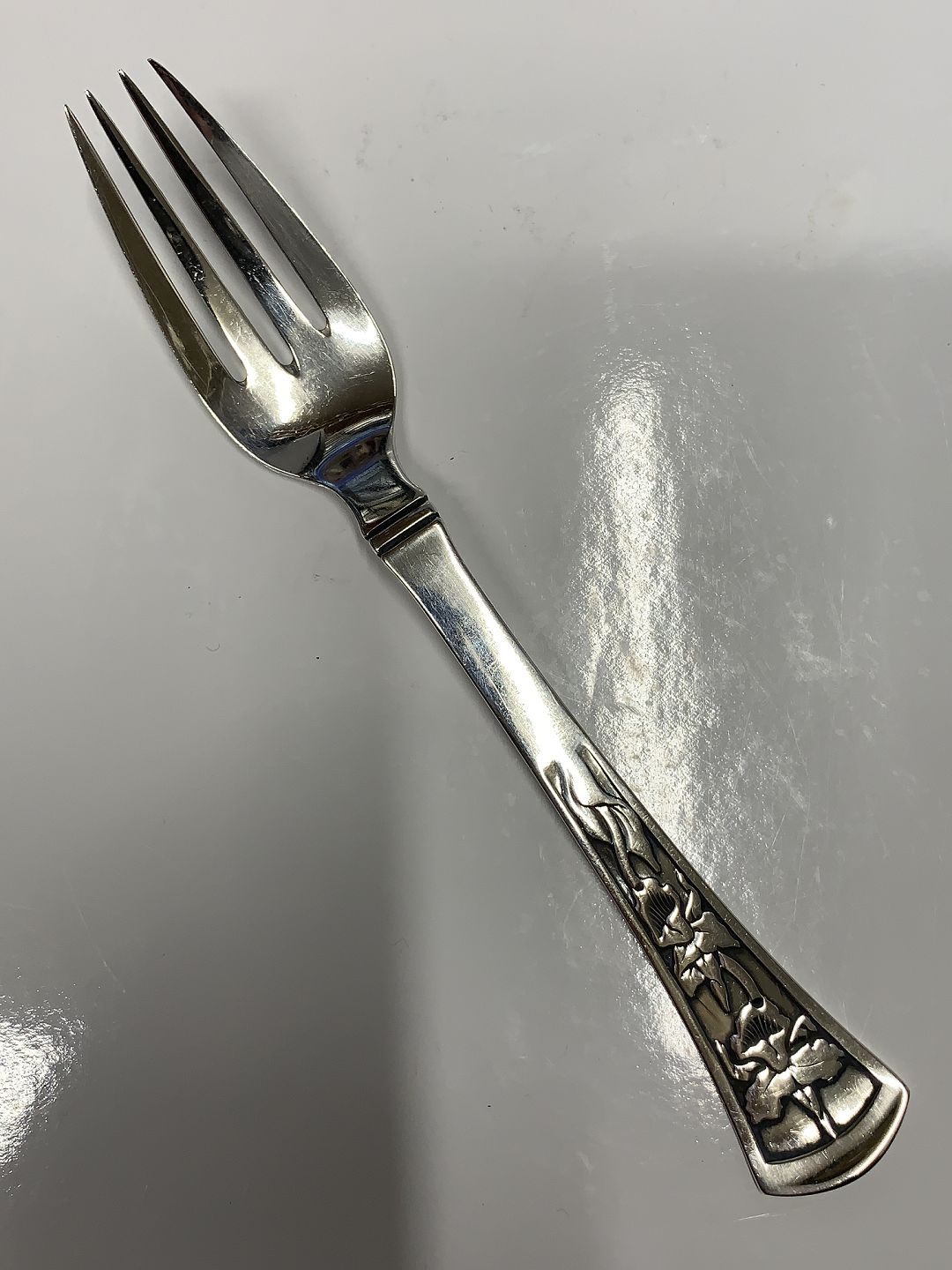 Orchide / Orkide Barnegaffel i Sølv Længde 15,2 cm Fremstillet hos Horsens Sølvsmedie, Orkide sølvbestik 830s Pæn og pudset stand Pakket i pose
