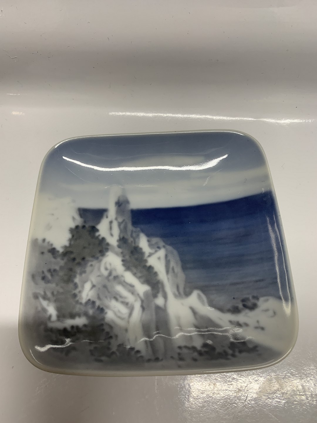 Royal Copenhagen Firkantet asiet (oprindeligt askebæger) Møens Klint Sommerspiret.