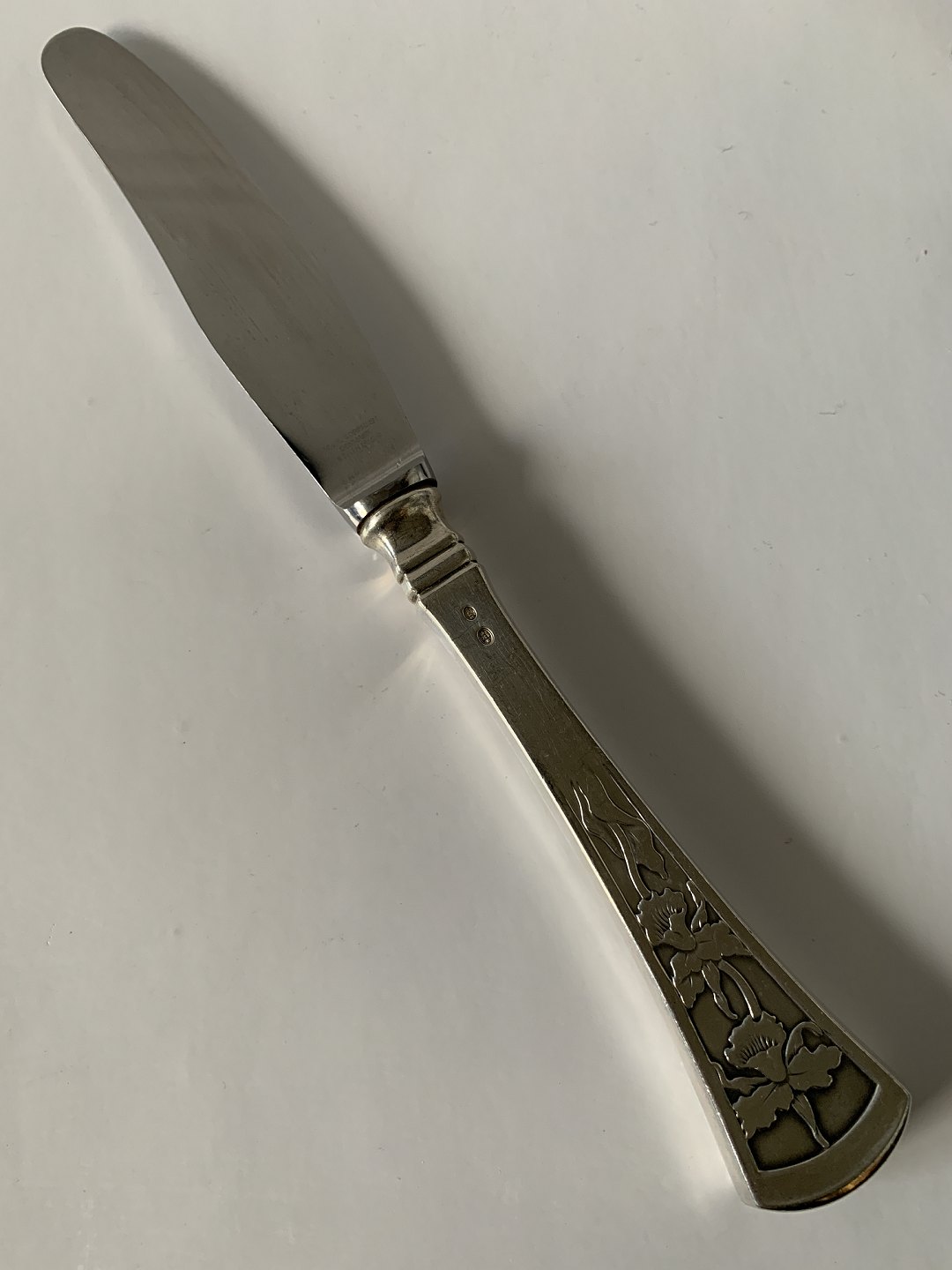 Orchid / Orkide Dinner Knife in Silver Length 21.8 cm Made at Horsens Sølvsmedie, Orkide silver cutlery 830s Nice and polished condition Packed in bag