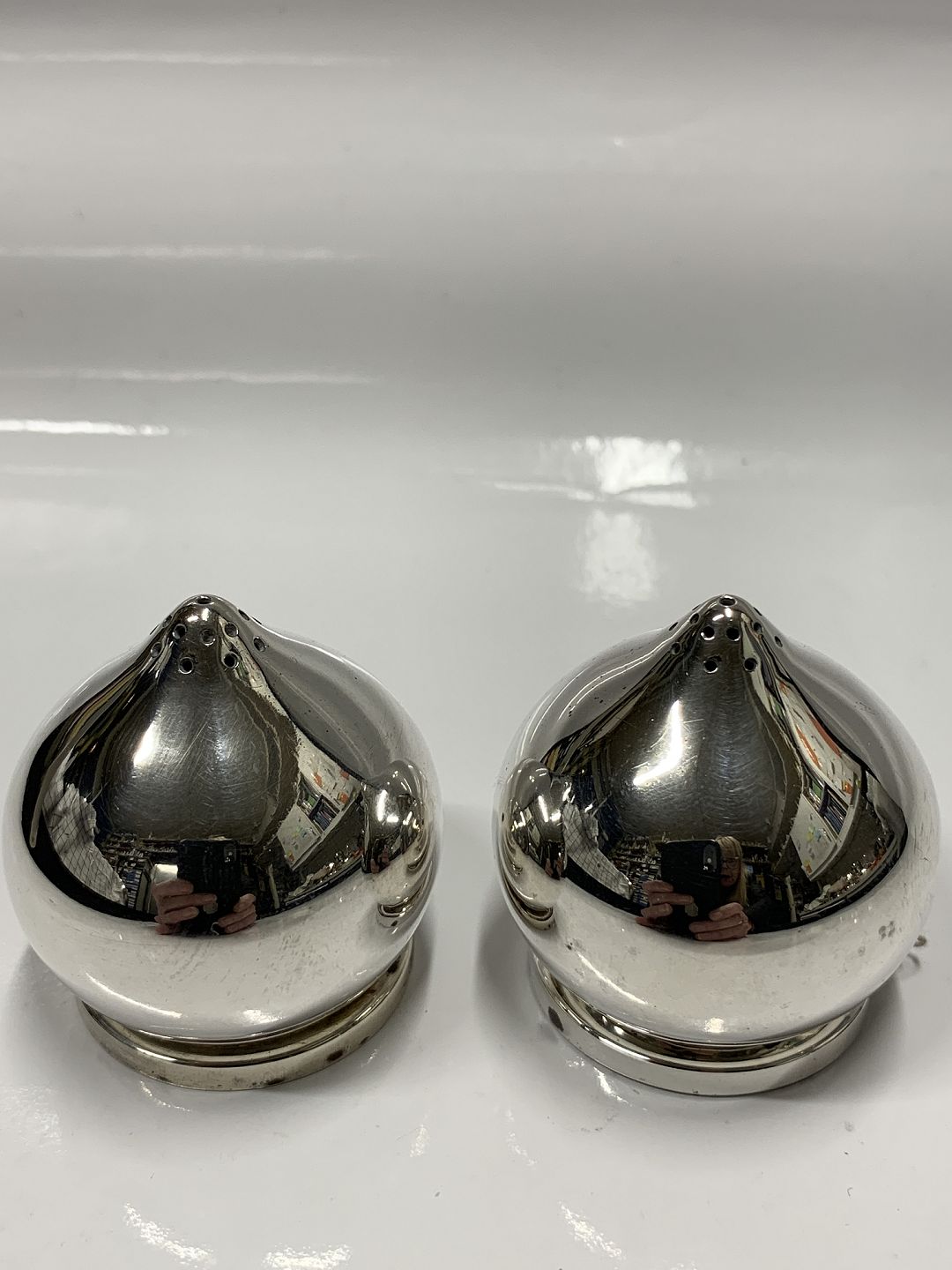 Salt & Peberbøsse Sterling sølv Stemplet: Aage Weimar, Sterling Silver, Denmark Mester: Aage Weimar Højde 4,5 cm. Flot og velholdt stand. Prisen er for sættet.