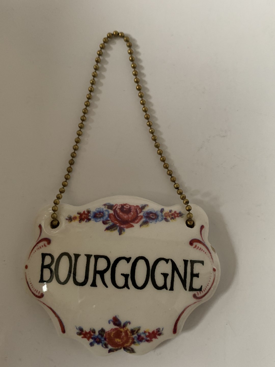 Flaske / Karaffel Bourgogne skilt med kæde