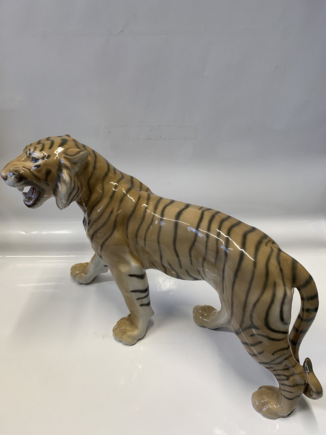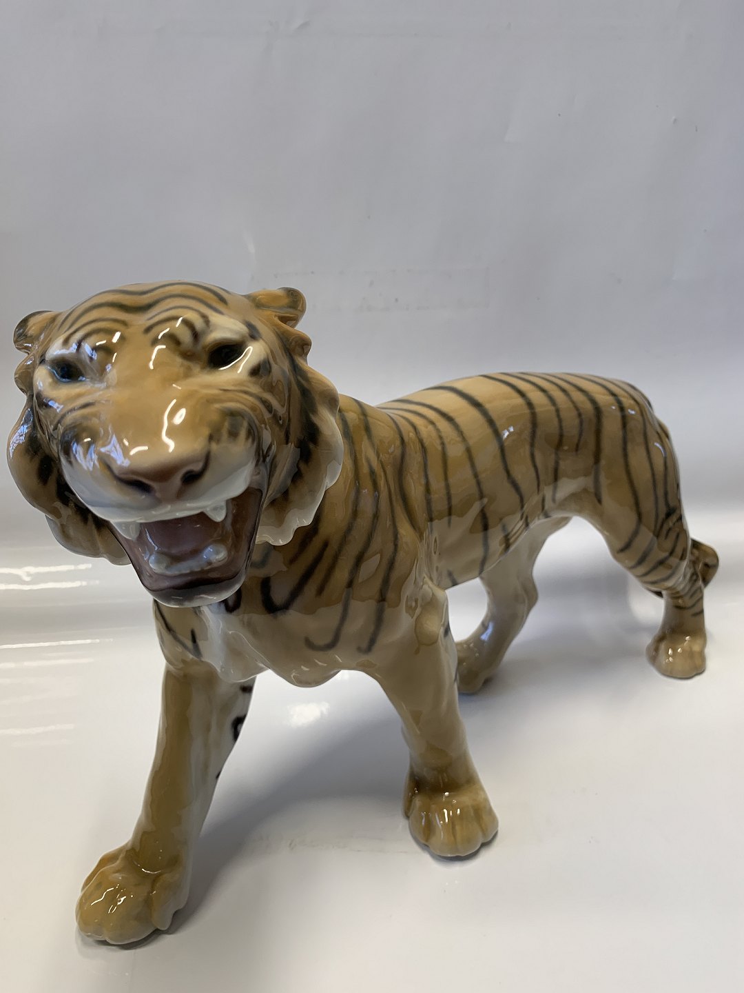 Bing & Grøndahl Tiger figur. Kæmpe Tiger Lauritz Jensen Dek. nr. 2056 1. sortering Højde 24 cm Længde 37 cm. Pæn og velholdt stand