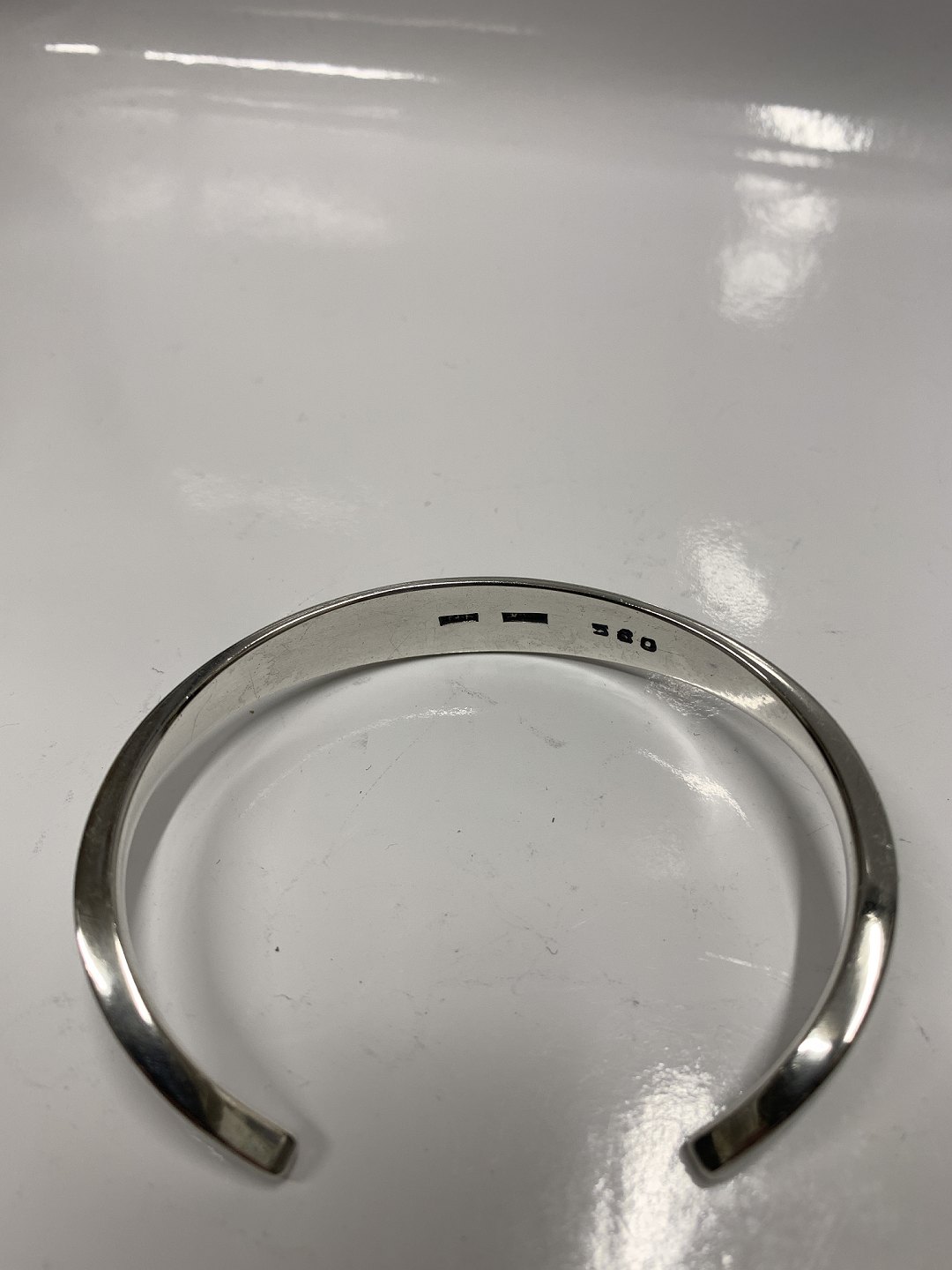 Armring Sterling Sølv Stemplet F. AHM, Denmark, 925S, No. 80. Tegnet og udført af Frank Ahm 1970 - 2000. Måler indvendig 5,7 x 4,8 cm Måler udvendig 6.2 x 5,1 cm Brugt og pæn stand