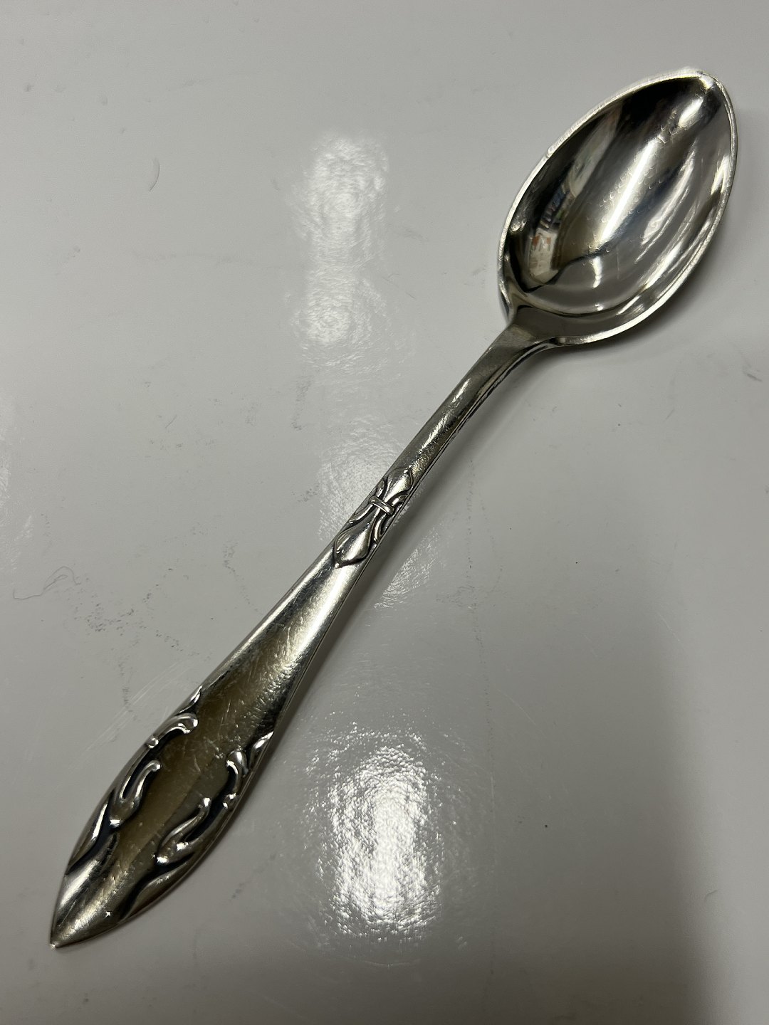 Divided Lily Teaspoon / Coffee Spoon in Silver Frigast Length 12 cm Nice and well-maintained condition All cutlery polished and packed in bag