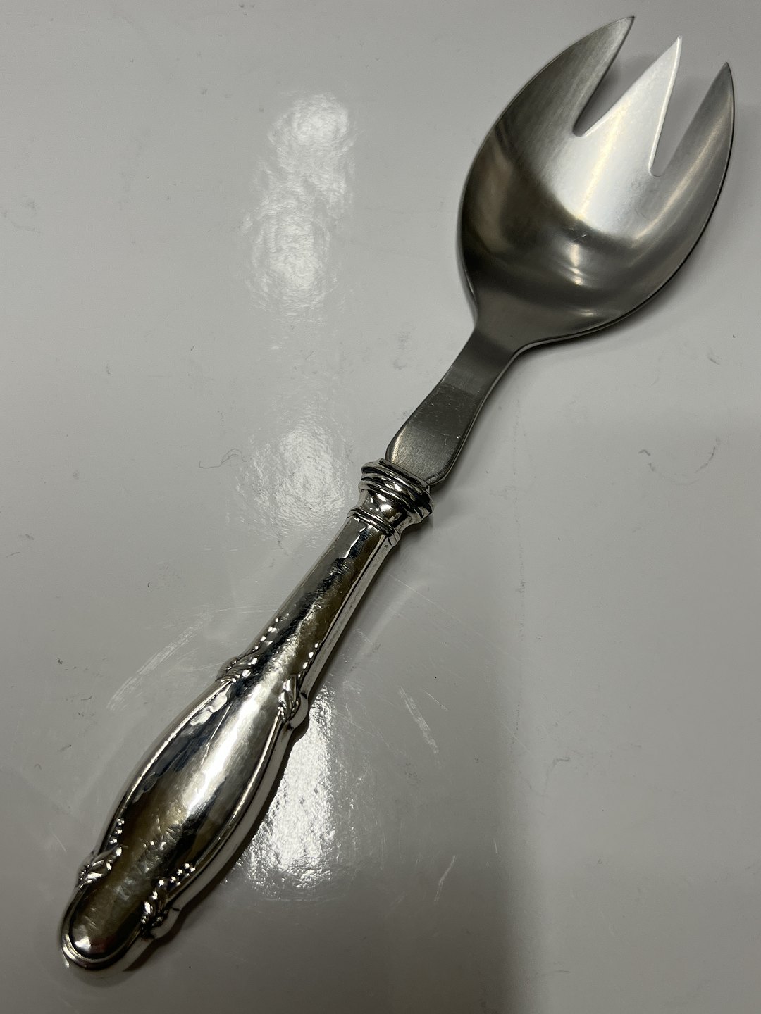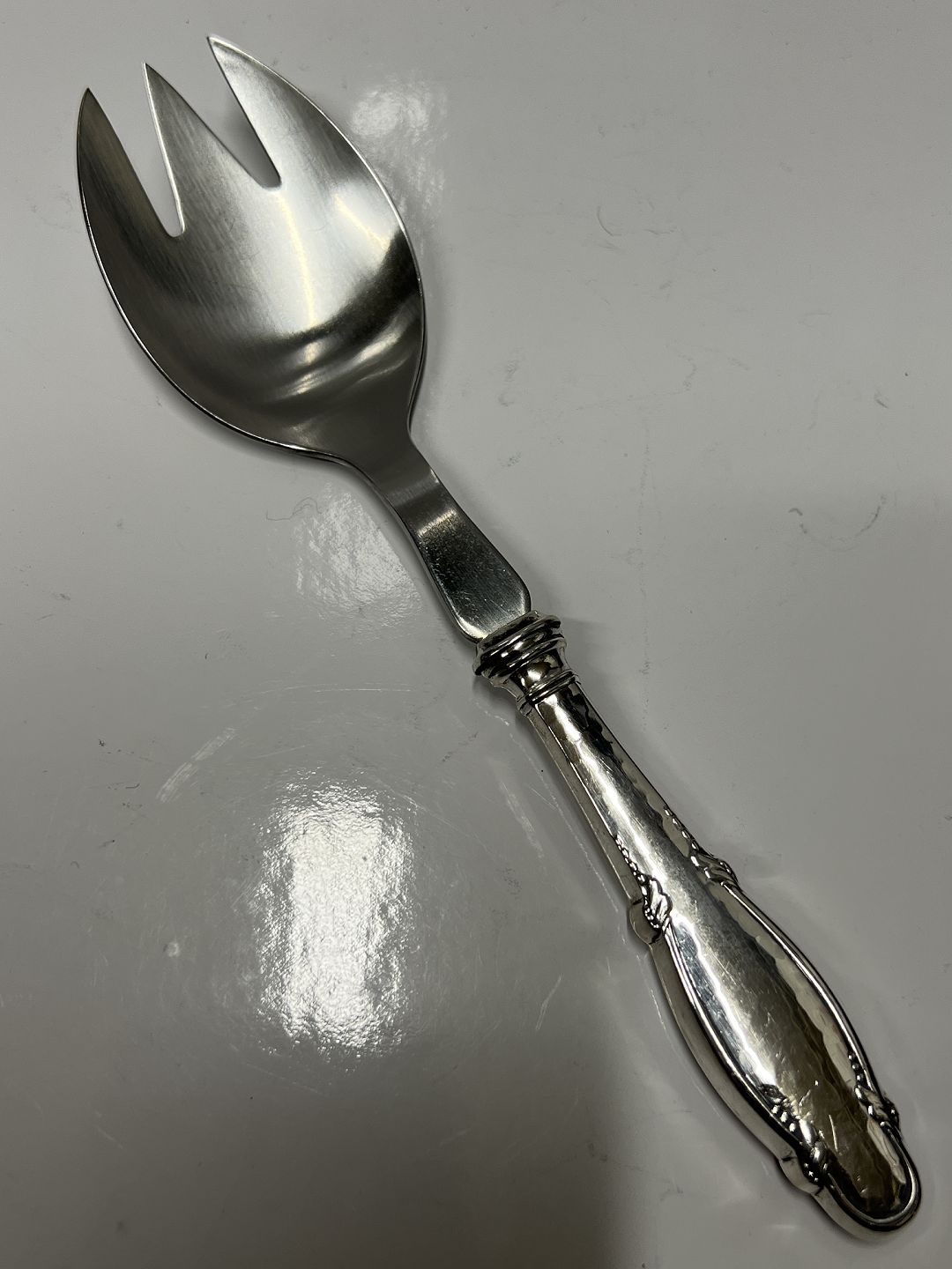 Salatgaffel Frijsenborg i Sølv med stål laf Længde 17,4 cm Pæn og velholdt stand Alt bestik pudset og pakke i pose