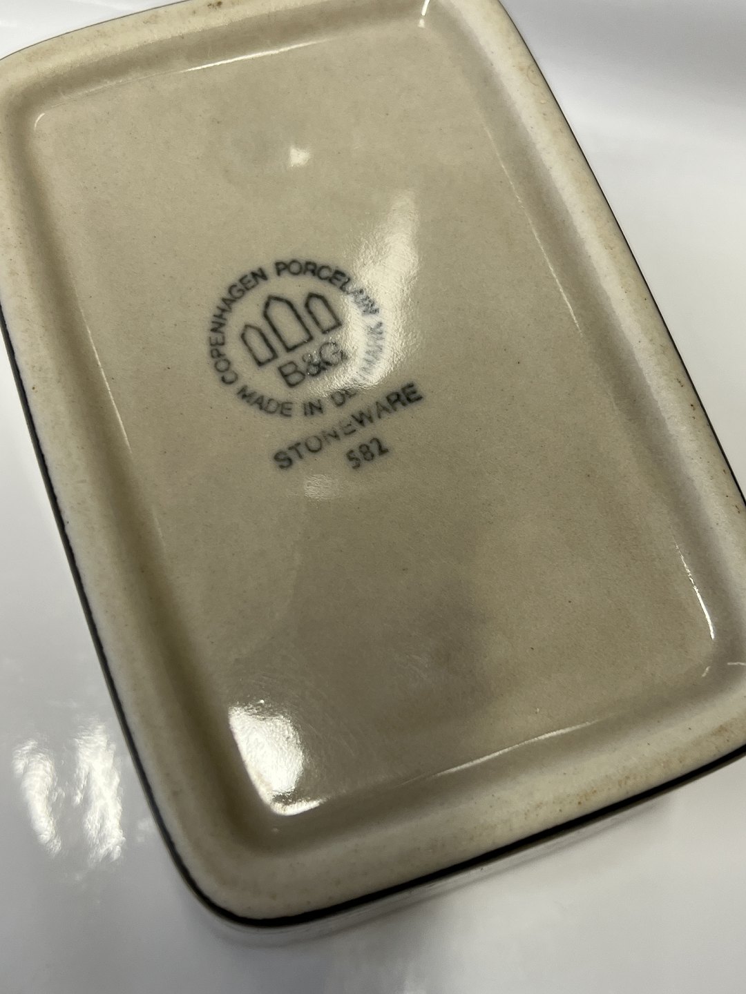 Bing & Grøndahl Stentøjsstel, Peru, Smørboks uden låg. Længde 14 cm. Højde 6,5 cm. Dekorationsnummer 582 Flot og velholdt