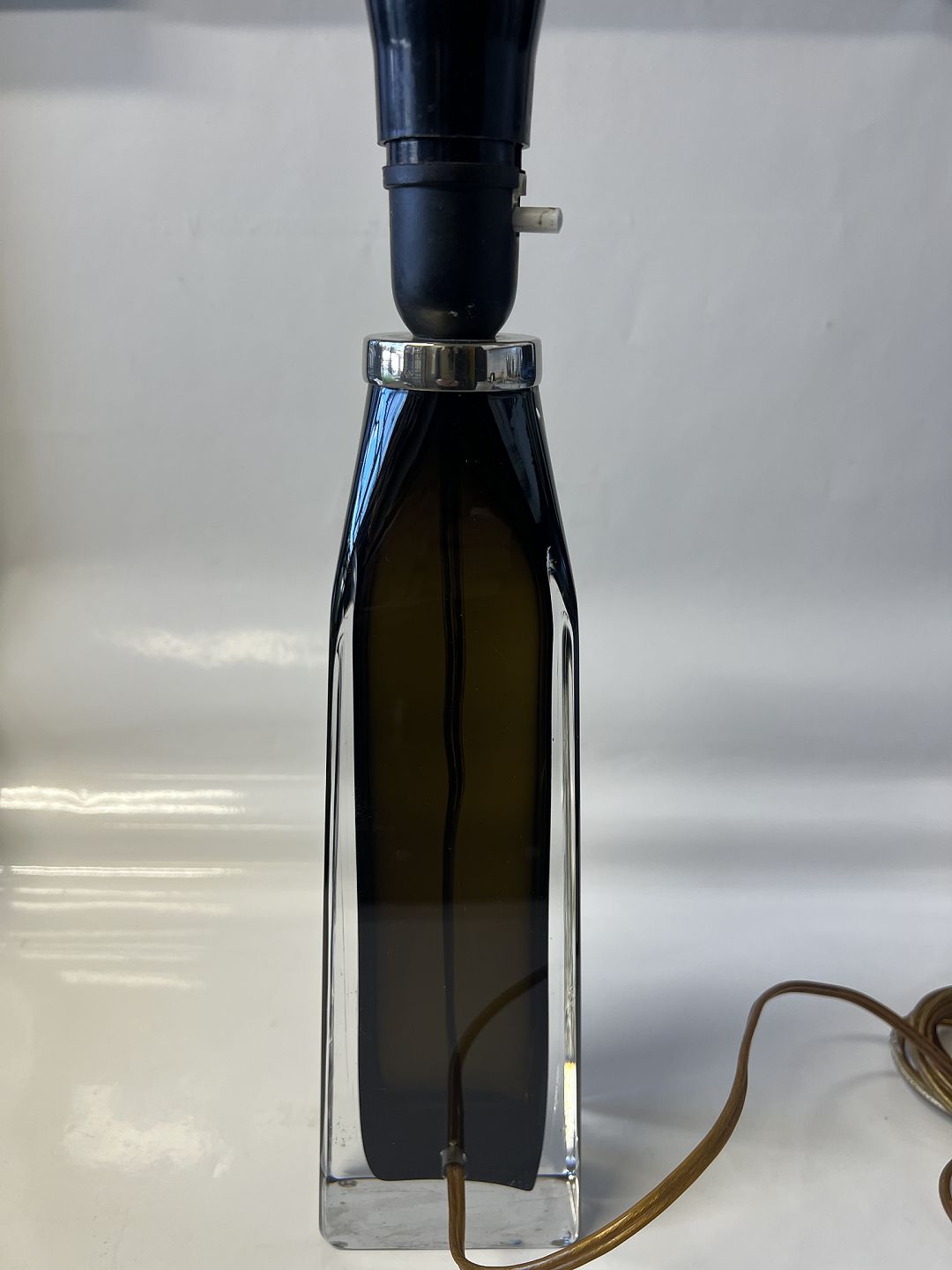 Orrefors Glasværk, Sverige: Rektangulær bordlampe. Klar og røgfarvet kunstglas. Højde med fatning 38 cm. Design: Carl Fagerlund i 1960'erne. Sign.: Orrefors