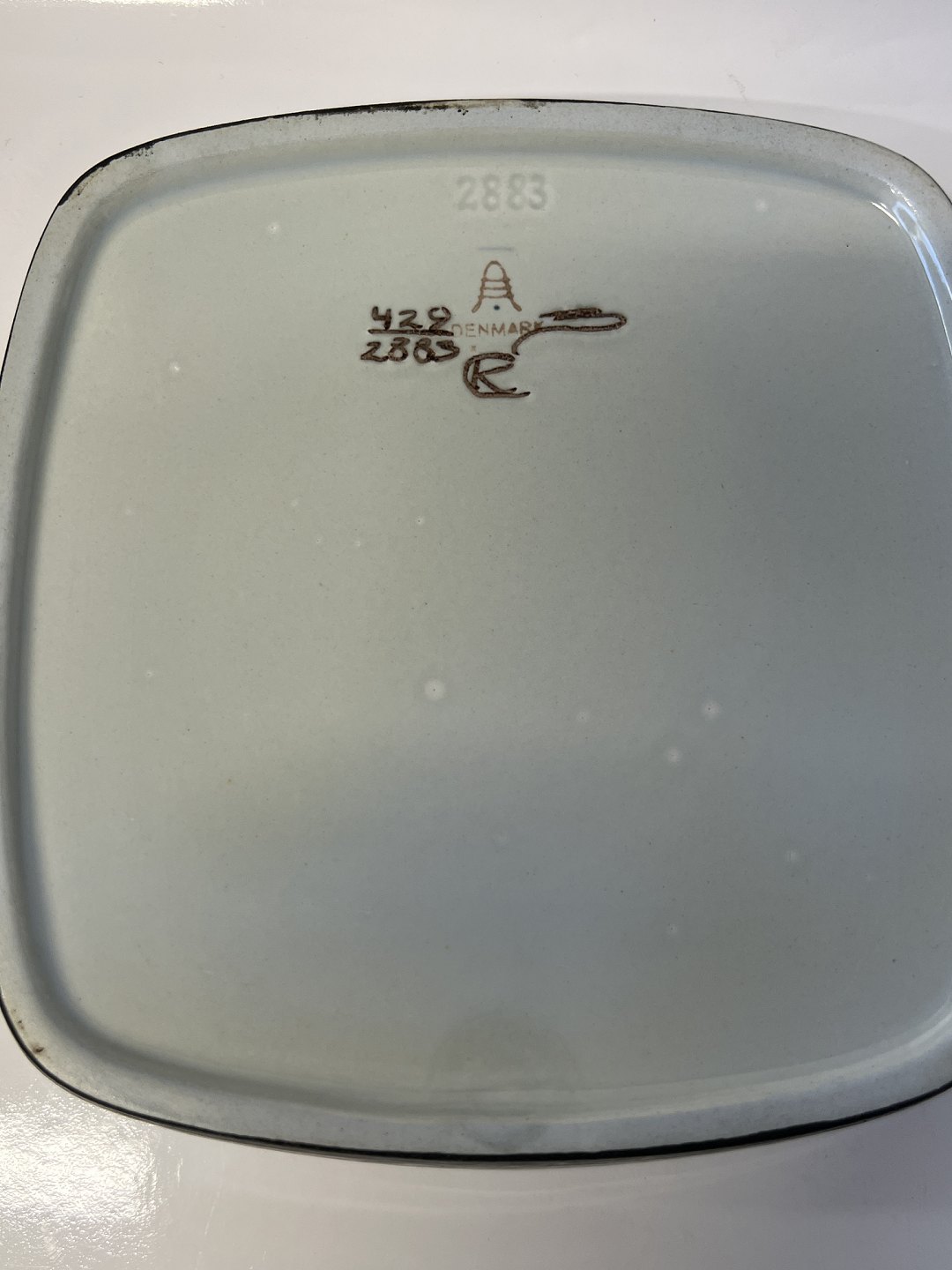 Aluminia/Royal Copenhagen Tenera Firkantet fad Fajance. Dekorationsnummer 429/2942. Designet af Kari Christensen 2. sortering. Mål 17x17 cm. Pæn og velholdt.
