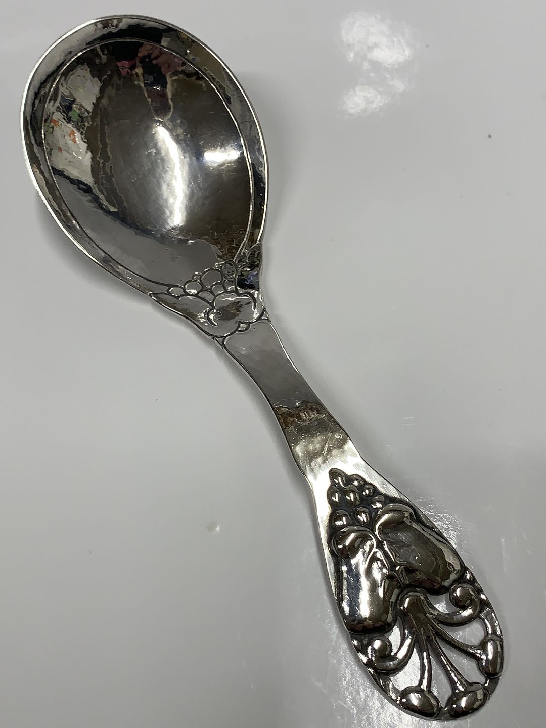 Serving spoon in hammered silver Stamped Three Towers Length 17.9 cm Nice and well-maintained condition