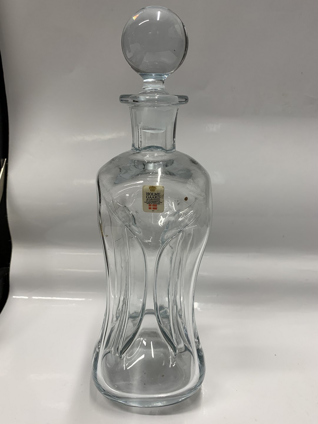 Holmegaard carafe, Kluk bottle Height with stopper 28 cm. Condition: Very fine, few to no signs of use.