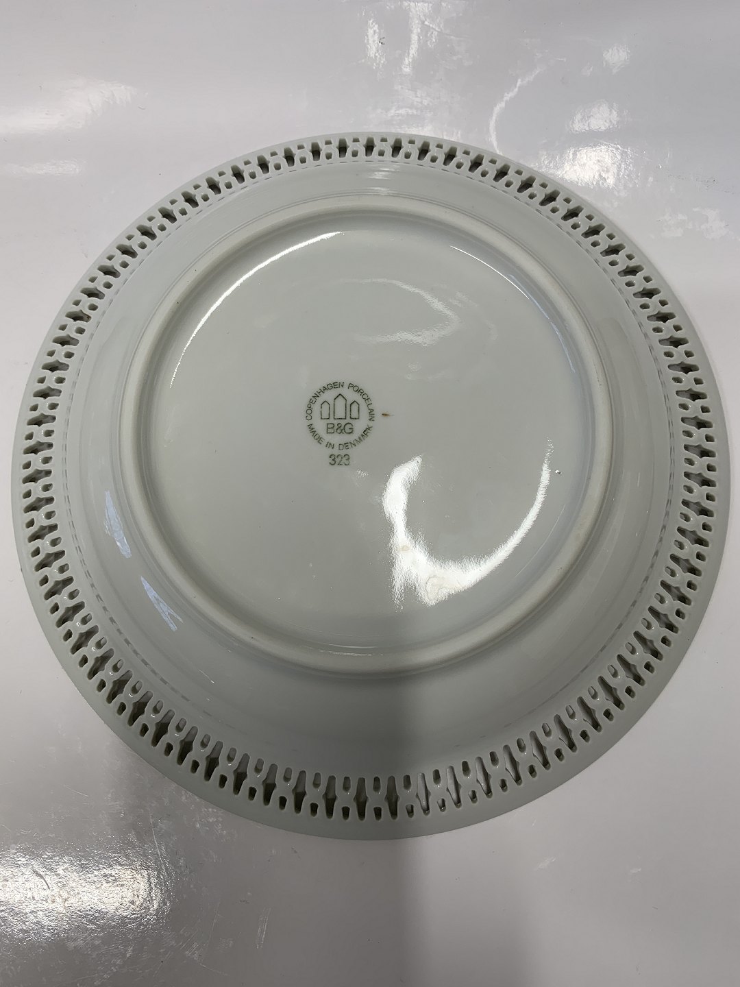 Bing & Grondahl, Haga, Deep plate with gold and openwork edge. Decoration number 323 Diameter 21 cm 1st grade Nice condition