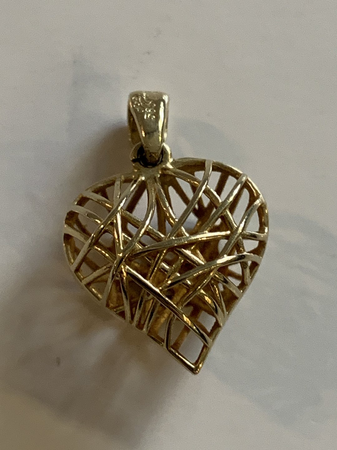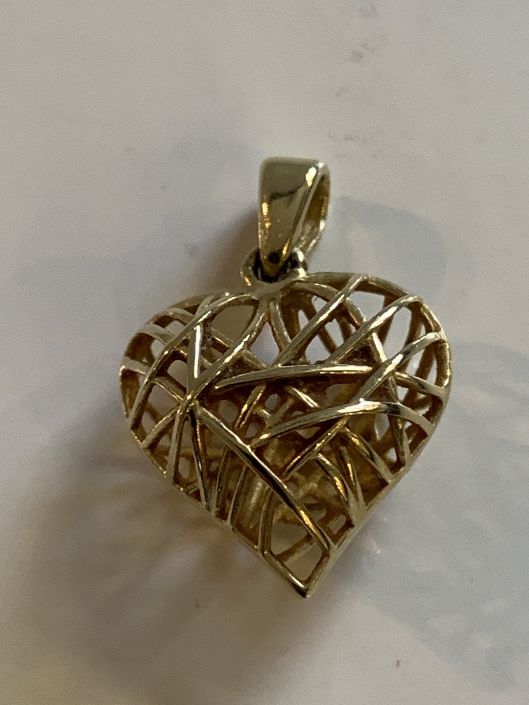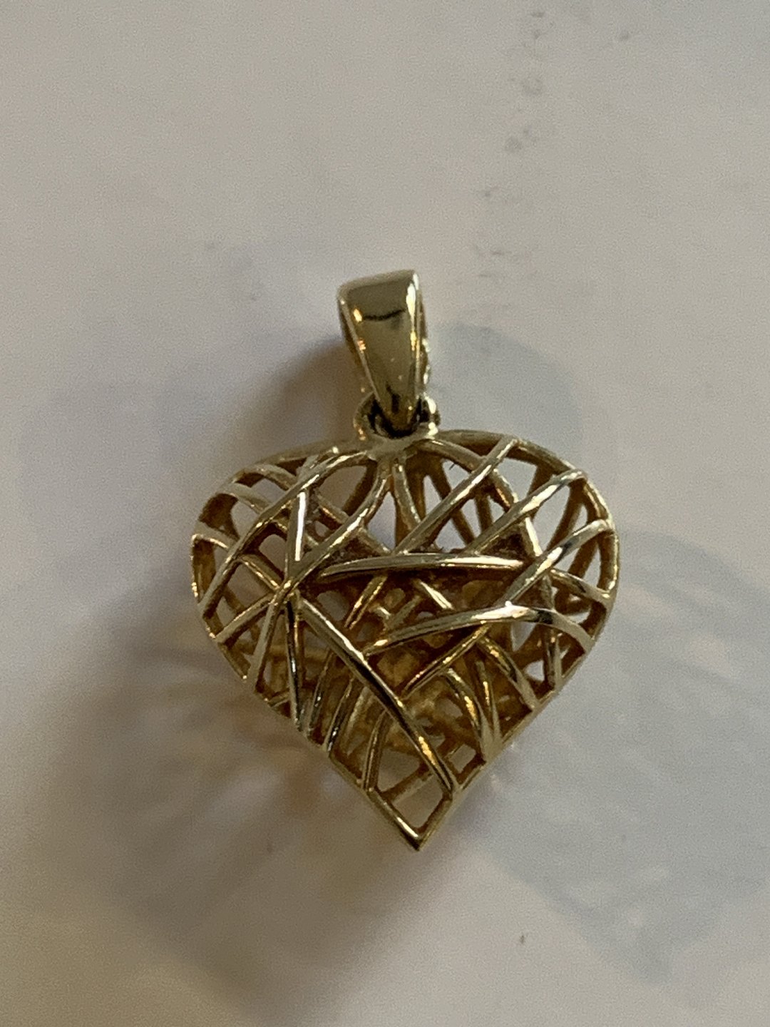 This heart-shaped pendant is made in a different style, as if it is woven from gold threads. It gives the pendant an airy and lively appearance that will be a perfect match with a thin gold chain. The design of the pendant makes it look like a bulging heart. A beautiful pendant especially for the young girl.