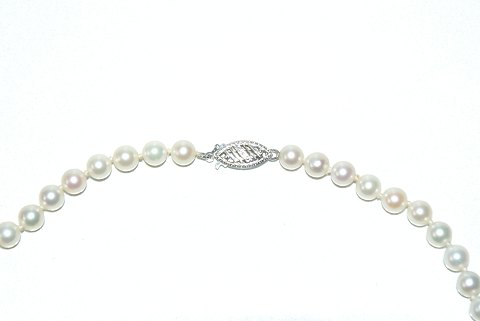 Pearl necklace with white gold's lås 14 Karat Gold Stamp: 14k G Length 35 cm. Pearl 4 mm. Beautiful and well maintained. The product is not physically in the store