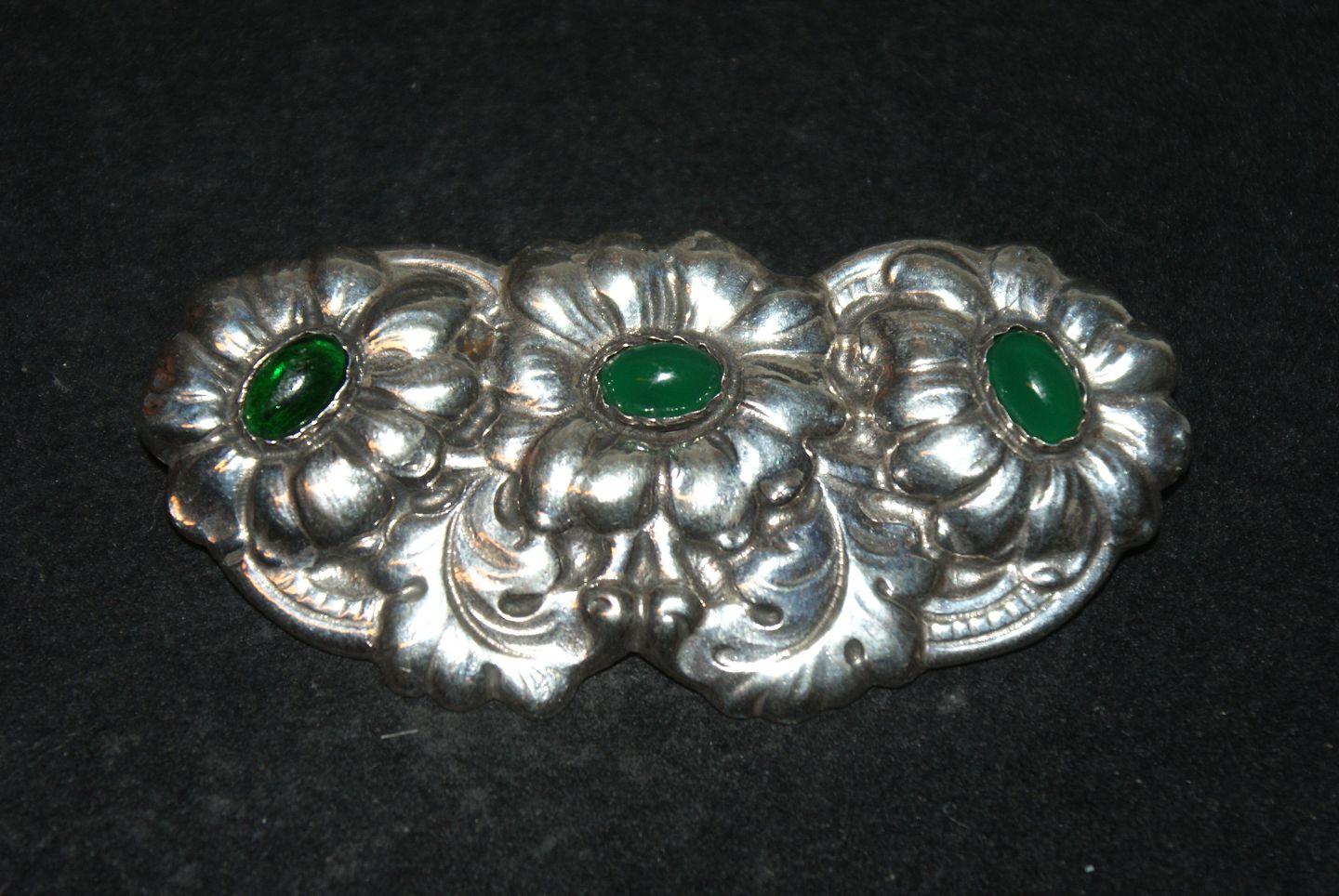 Broche i Jugendstil sølv Stempel: 830S, OXO, N.M. Sølvsmed: 1937-1947 Nicolai Søren Munck Størrelse: 76 x 36 mm. Flot & Velholdt stand. Se Brocher mm. http://www.antik-huset.dk/produkter/smykker/solv-brocher-og-vedhaeng.html