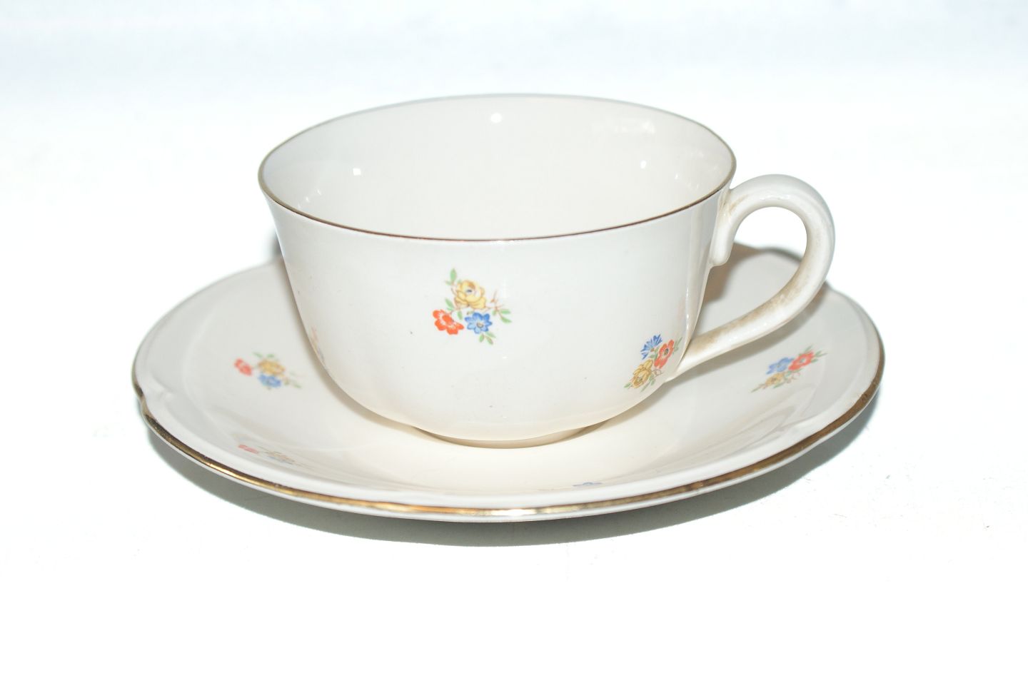 Anne Sofie, Aluminia, Little teacup Goal 9 cm dia Height 5.2 cm Slightly worn on Gold Edge and slightly cracked Other wise flawless