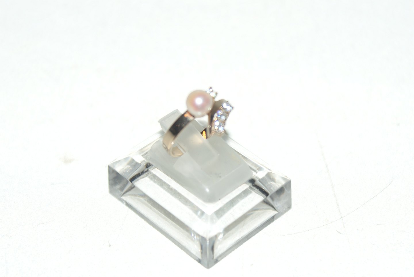 Elegant dame ring med perle og zirkoner i 8 karat guld