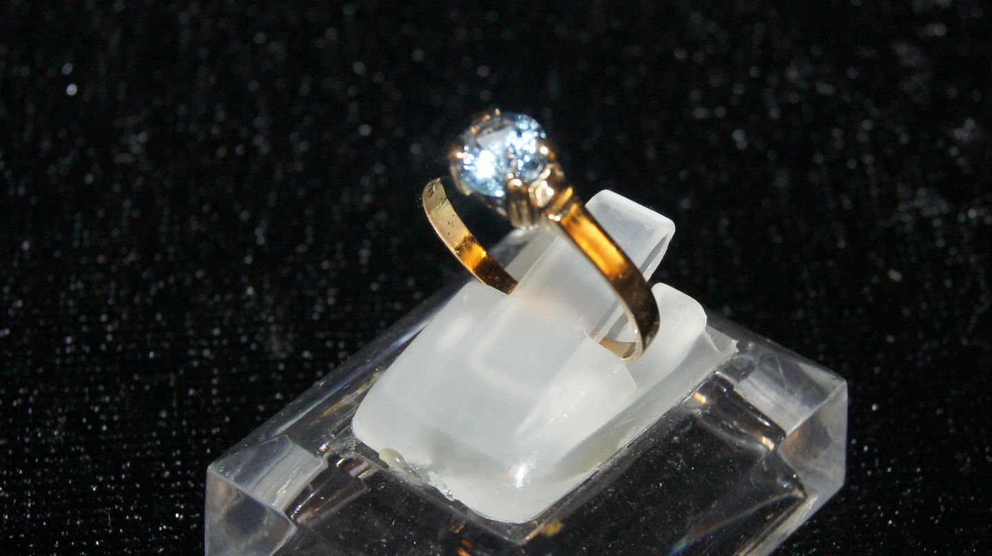 Elegant damering med lyseblå sten i 14 karat Guld