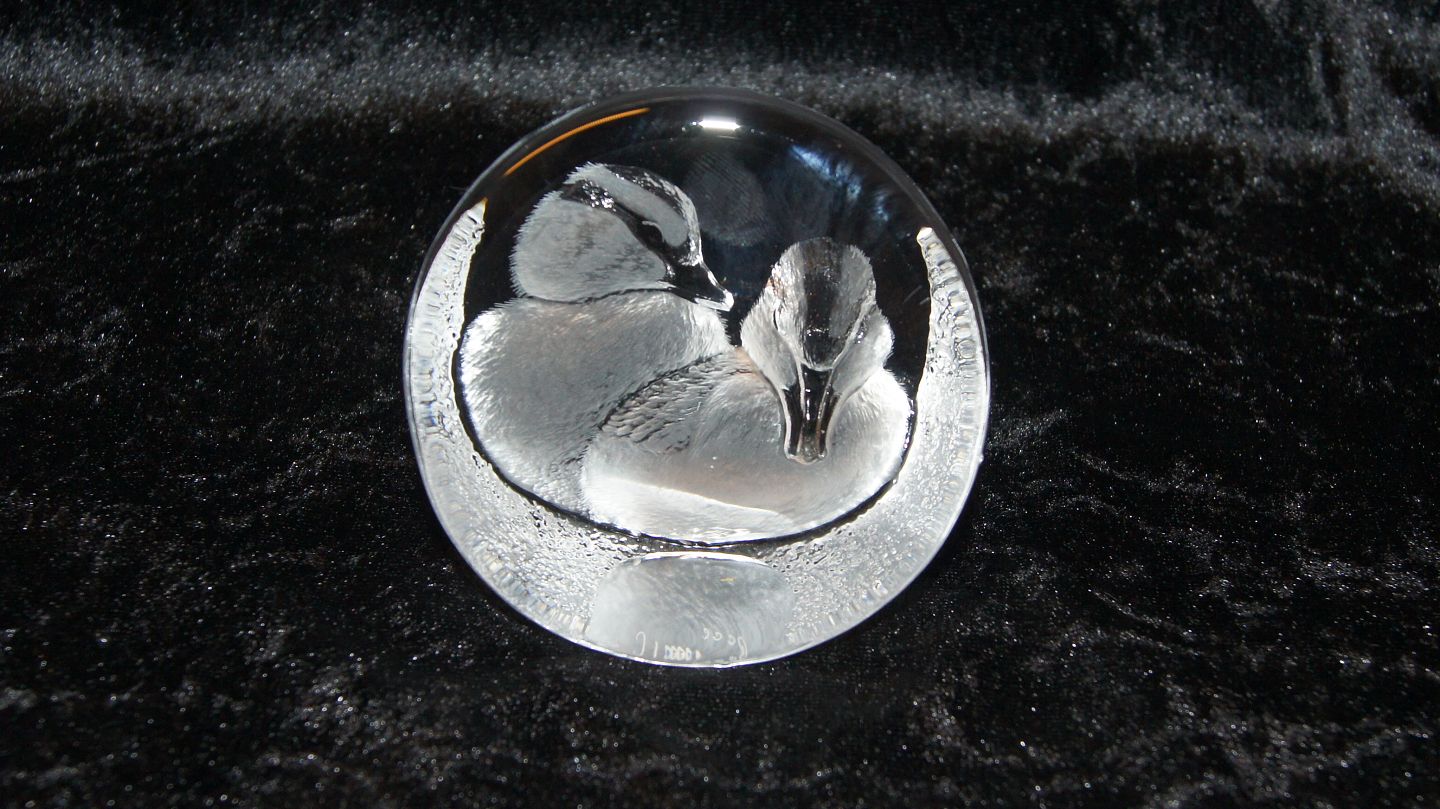 Graverede krystalglasskulptur Vikingskib Norge Ma