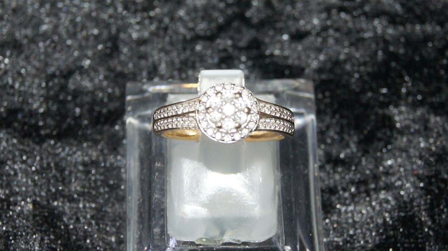 18 karat guld Damering med brillanter Stemplet GHA 750 Størrelse 53 Flot og velholdt stand. Varen findes ikke fysisk i butikken. Kontakt os for fremvisning