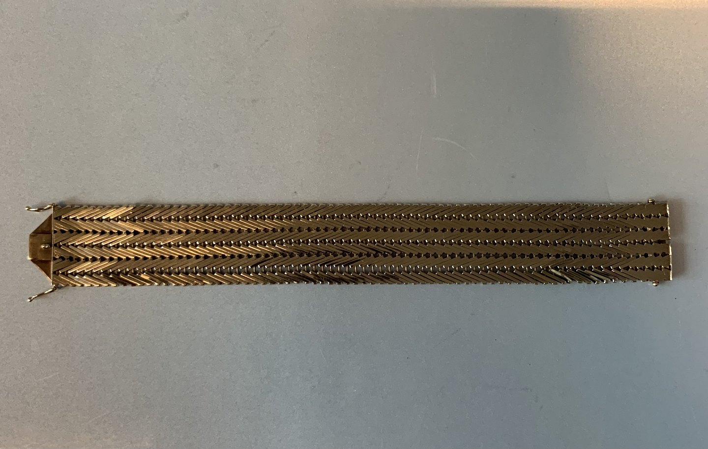 Geneve Armbånd 3 Rk 14 Karat Guld Stemplet 585 AAA Længde 18,8 cm ca Brede 2,3 cm ca Tykkelse 1,82 mm ca Med brugsspor eller pæn stand