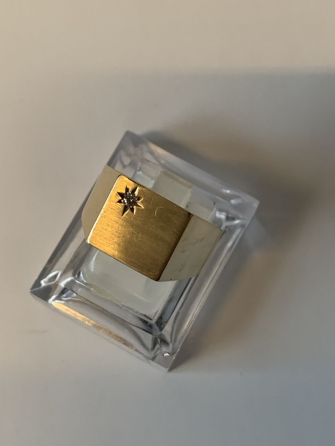 Signetring med en diamant i 14 karat guld.