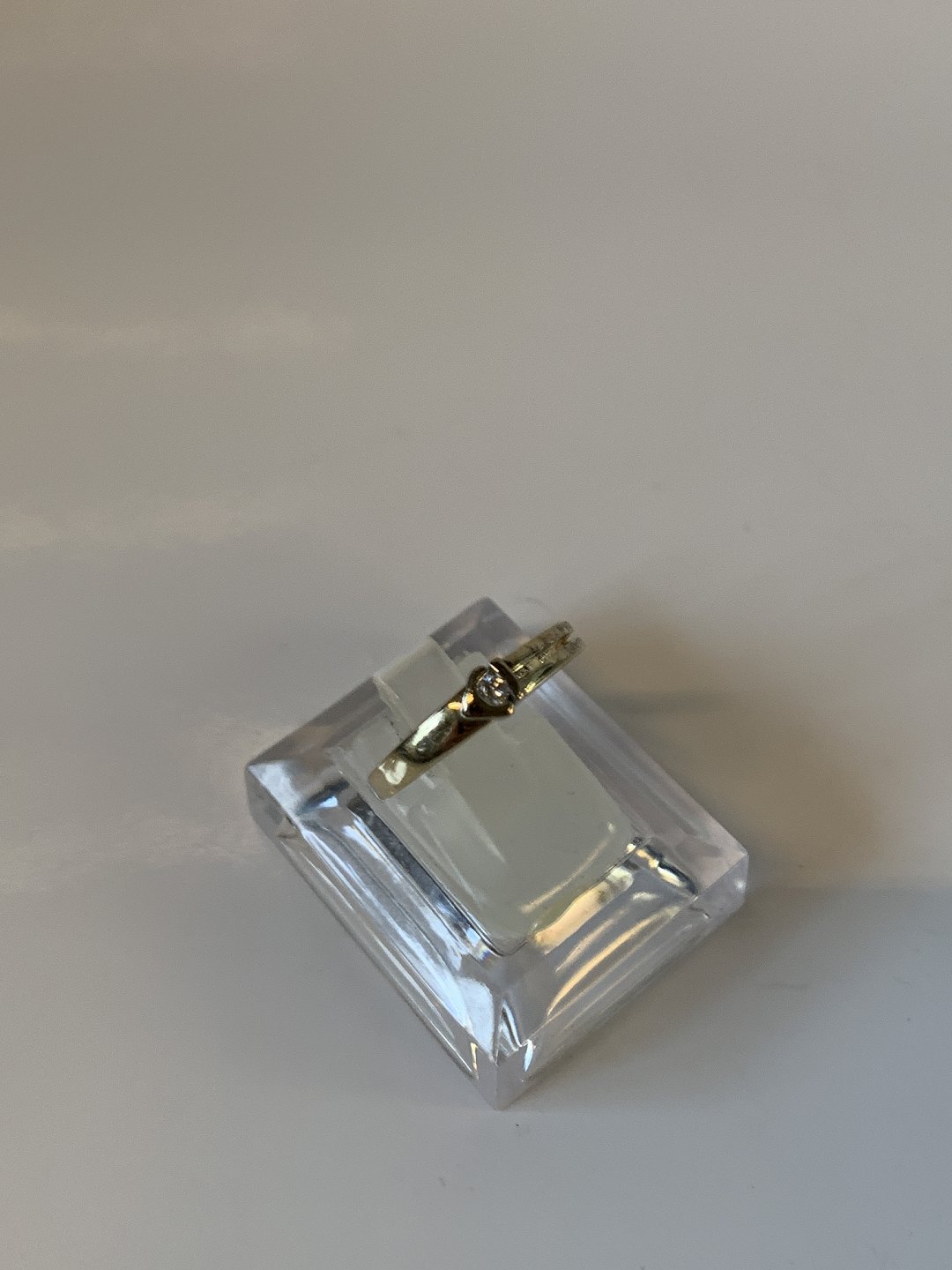 Damering med Diamant 14 Karat guld. Stemplet BLA 585. Størrelse: 58 / 18,46 mm. Flot og Velholdt. Varen findes ikke fysisk i butikken. Kontakt os for fremvisning.