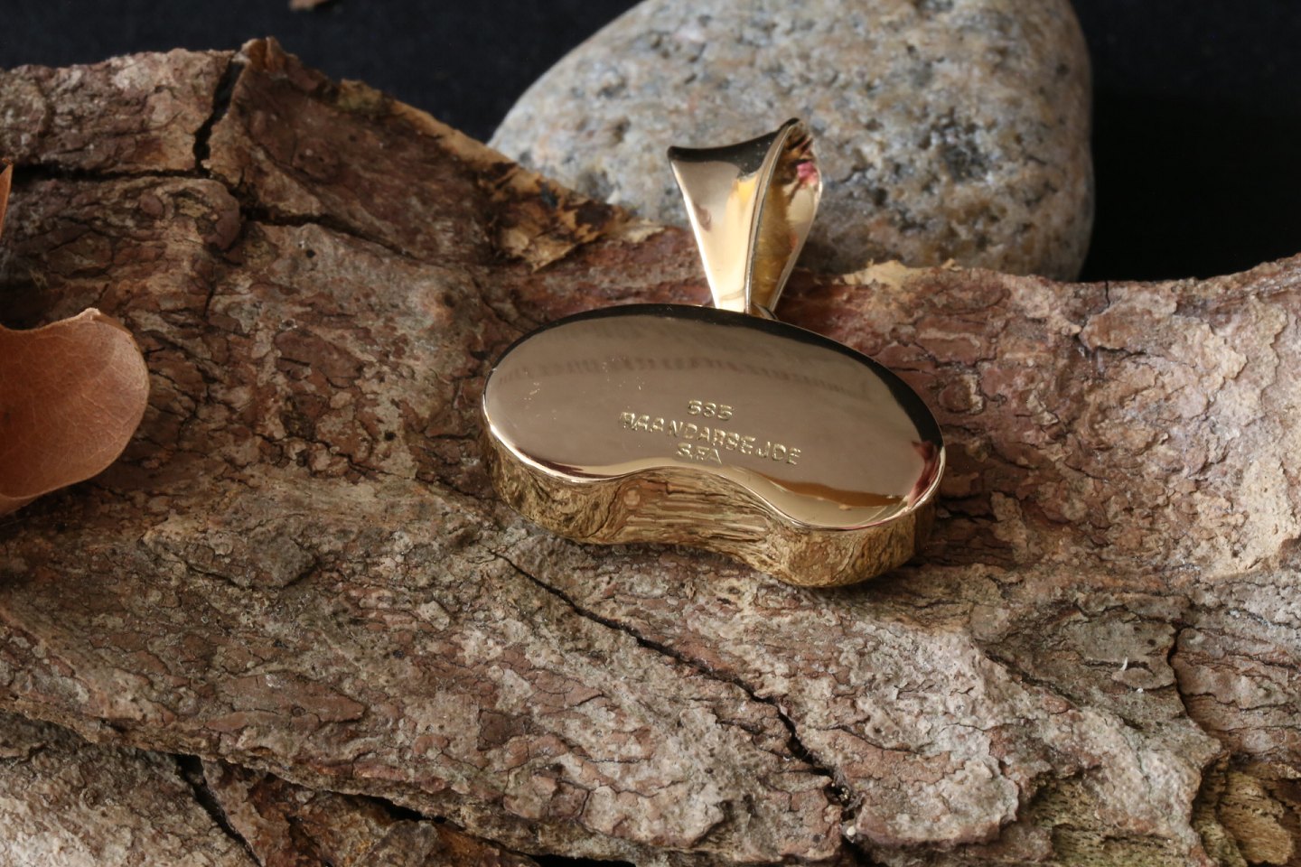 Dette vedhæng er udformet med ciseleringer, så det udgør et unikt og specielt smykke. Det er i 14 karat massivt guld, og kan bruges til halskæde eller vedhæng til armbånd. Hvis du vil have noget som ingen andre, skal du vælge dette vedhæng.