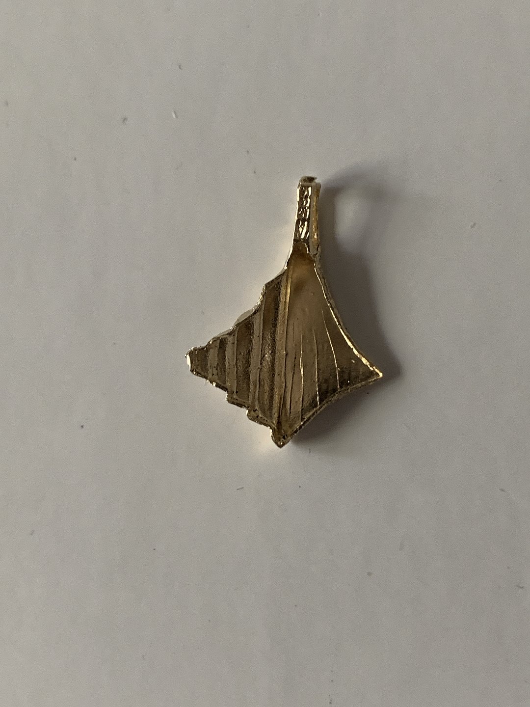Vedhæng i 14 karat guld til halskæde, udført i smukt unikt design. Vedhænget har flotte linjer, og blandingen mellem det rå og det bløde, gør dette vedhæng til noget specielt. Det har ikke et specielt mønster, hvilket gør det egnet til et allround smykke, der vil kunne bruges både hverdag og festen.