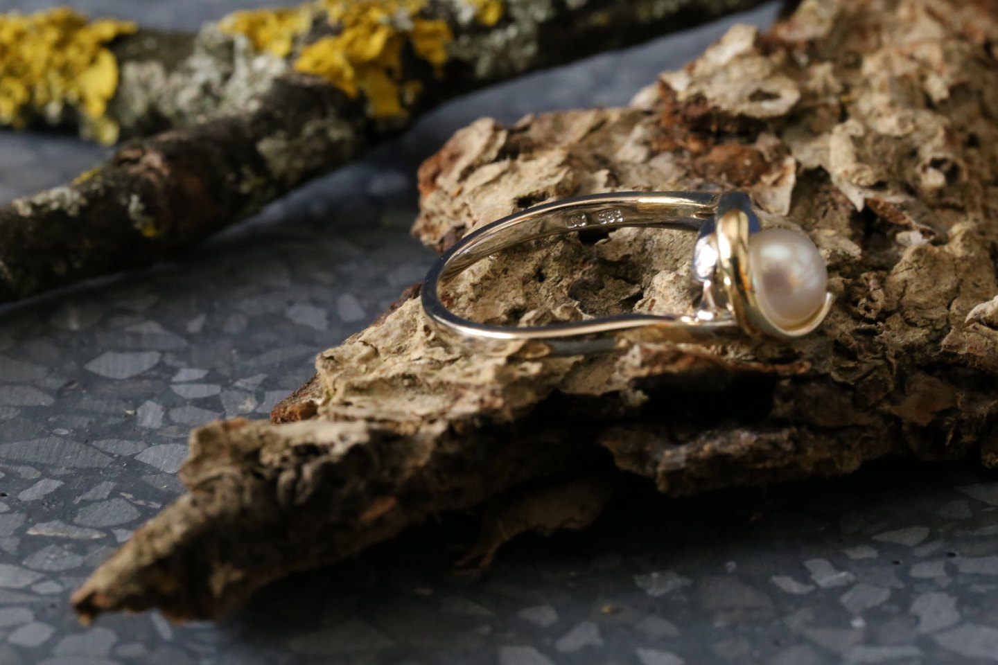 Smuk og tidløs damering i hvidguld med indlagt i perle. i størrelse 55. Ringen har en flot struktur, og kan let kombineres med andre ringe. På grund af ringens flotte tidløse mønster, kan ringen bæres af kvinder i alle aldre. Ringen er stemplet 585 SD.