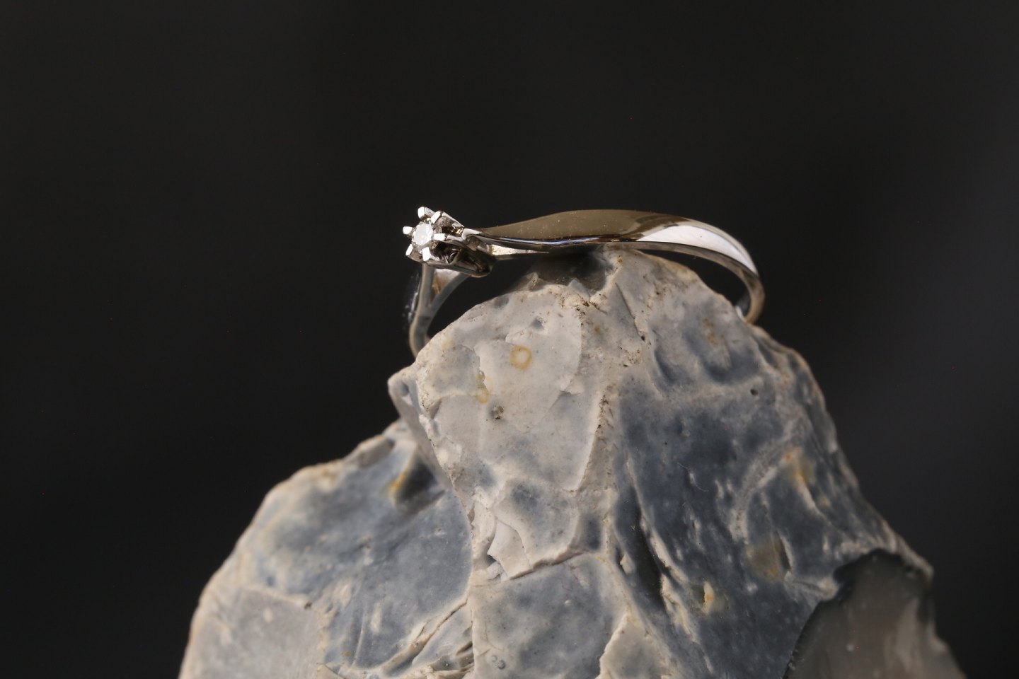 Damering med brillant i 14 karat hvidguld, str. 58, stemplet CAB