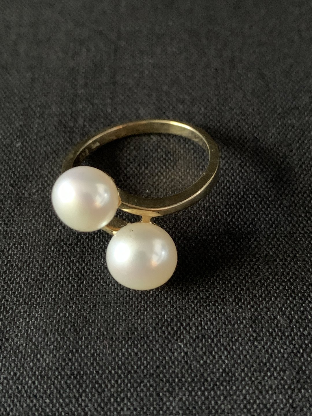 Smuk og tidløs damering i 8 karat guld med indlagt perler. i størrelse 54. Ringen har en flot struktur, og kan let kombineres med andre ringe. På grund af ringens flotte tidløse mønster, kan ringen bæres af kvinder i alle aldre. Ringen er stemplet 333 JAa.
