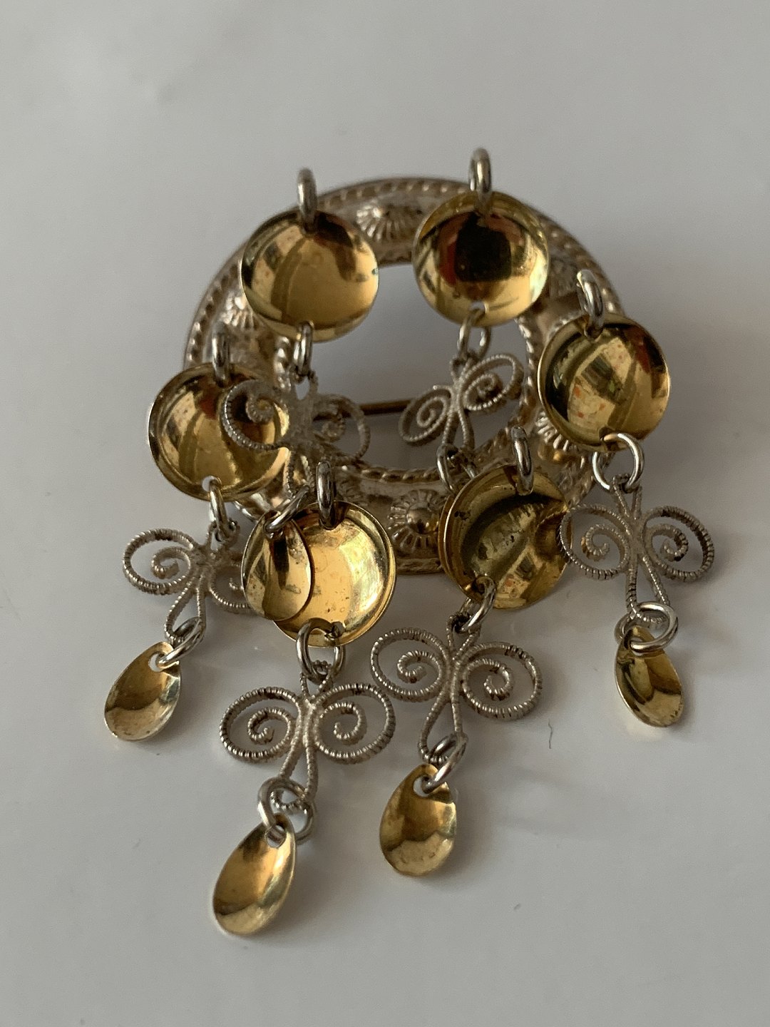 Flot broche i sølv, der matcher den norske nationaldragt. Brochen er lavet i national stil, med mange flotte detaljer. Vedhænget er oplagt, hvis du ejer en norsk nationaldragt.