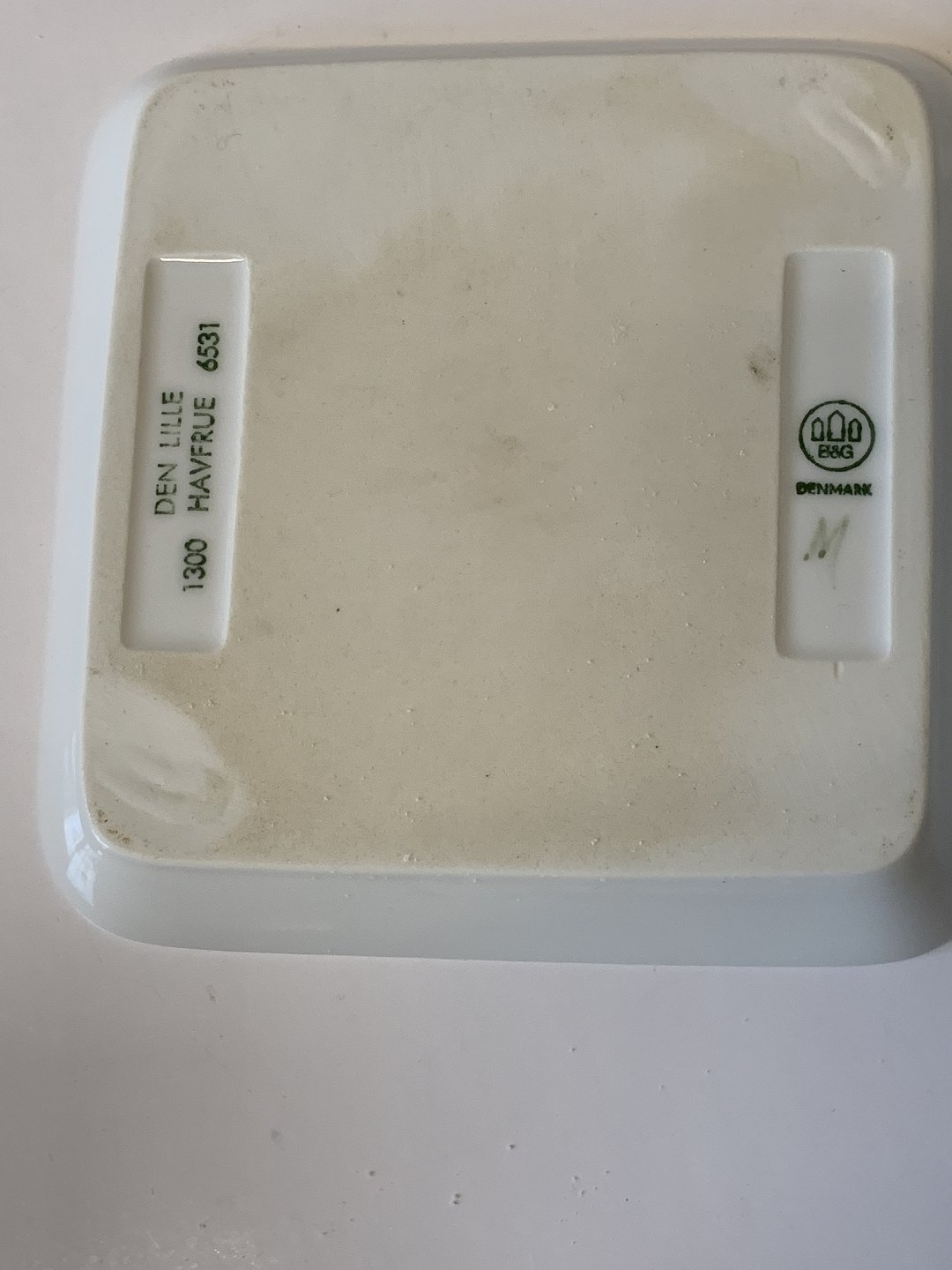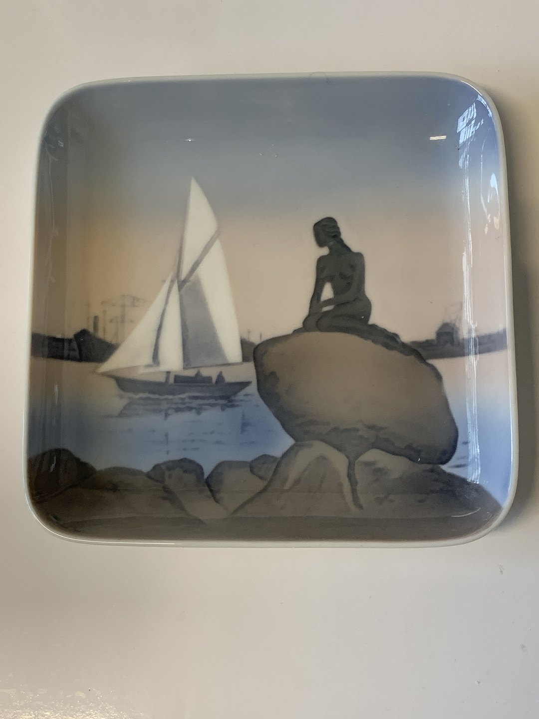 Den lille havfrue Fad Bing og Grøndahl. 1. Sortering. Mål: 12,5 cm X 12,5 cm. Dekorationsnummer: 1300 - 6531. Pæn og vedholdt stand