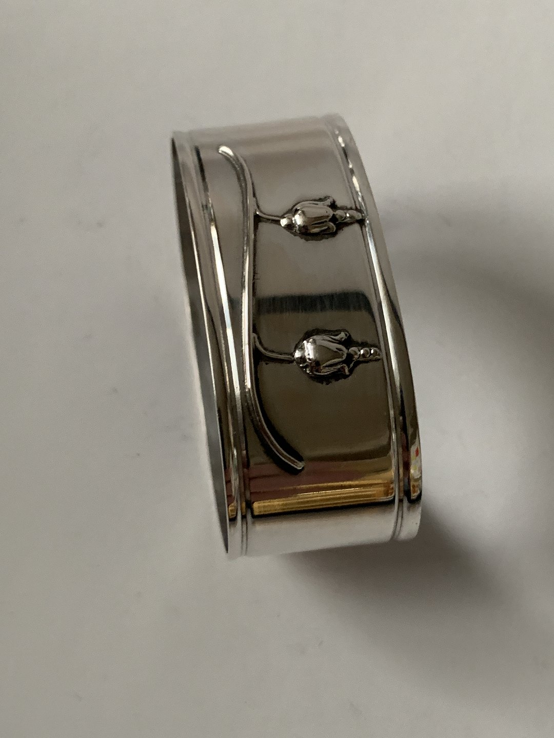 Servietring Sølv. Stemplet: Tre Tårne. Størrelse 1,9 x ø 5,1 cm. Velholdt stand. Poleret og pakket i pose.