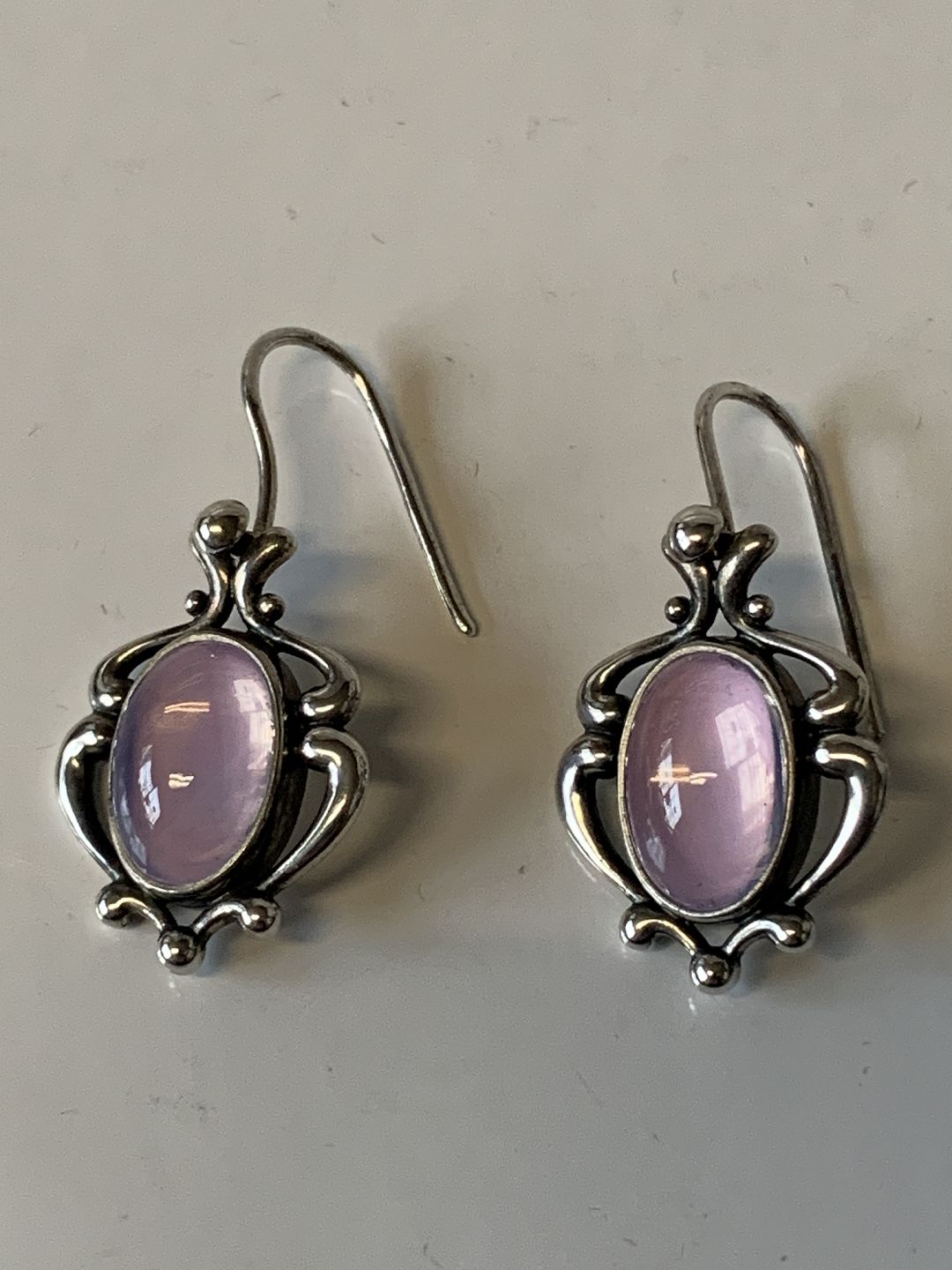 Georg Jensen sterlingsølv Heritage Årssmykke 2019, øreringe m. lilla kvarts De måler 3,2 x 1,5 cm. Perfekt stand.