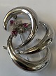 14 Karat Hvidguld, broche med brillianter og rubiner