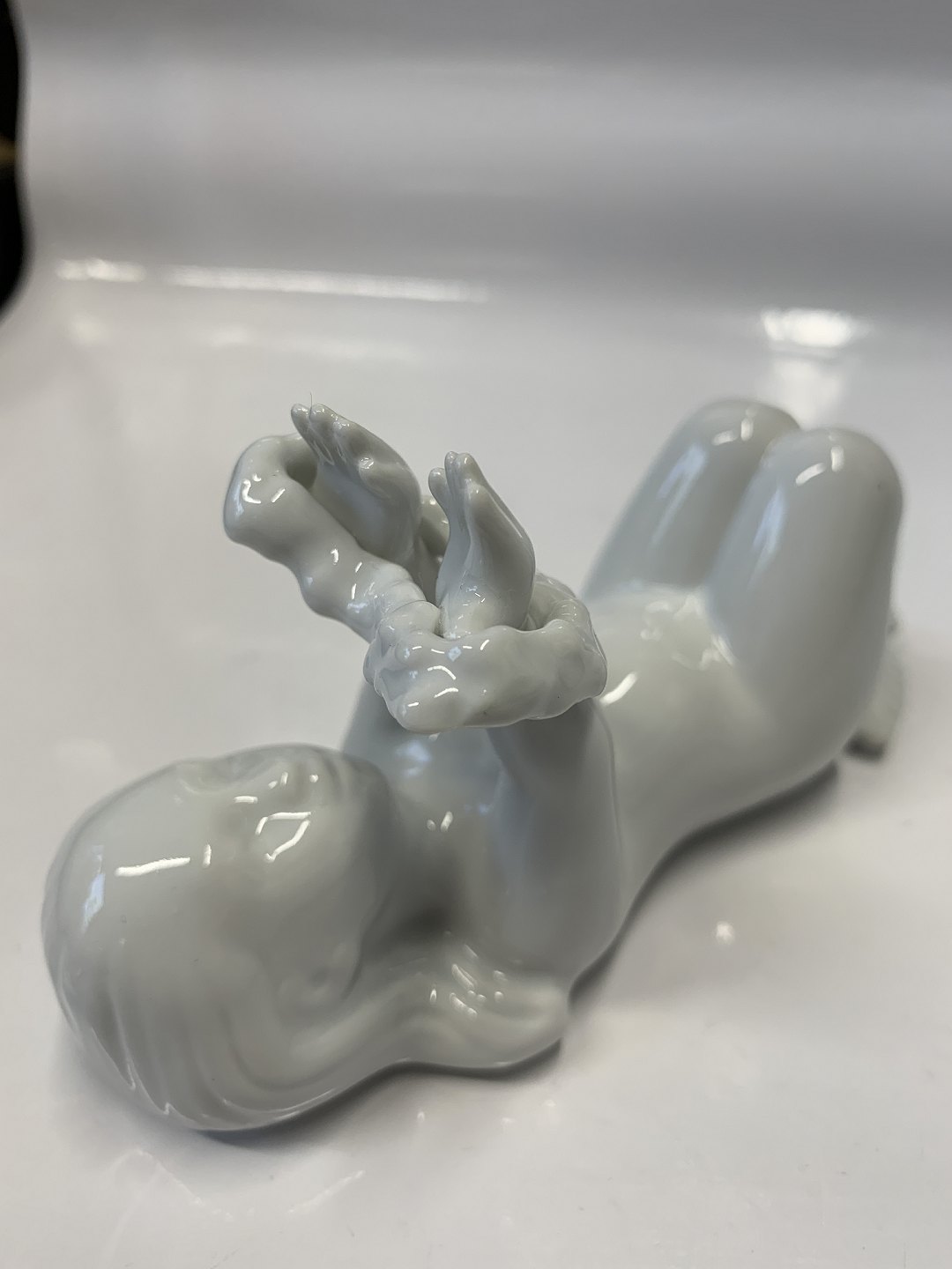 Bing & Grøndahl Blanc de chine, Hav børn, Hav pige liggende. Design: Ebbe Sadolin / Svend Jespersen Dekorationsnummer 2314 1. sortering, Længde 12,5 cm. Perfekt stand.