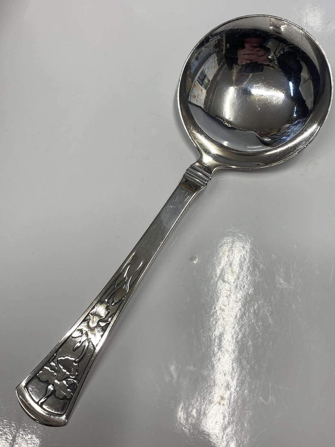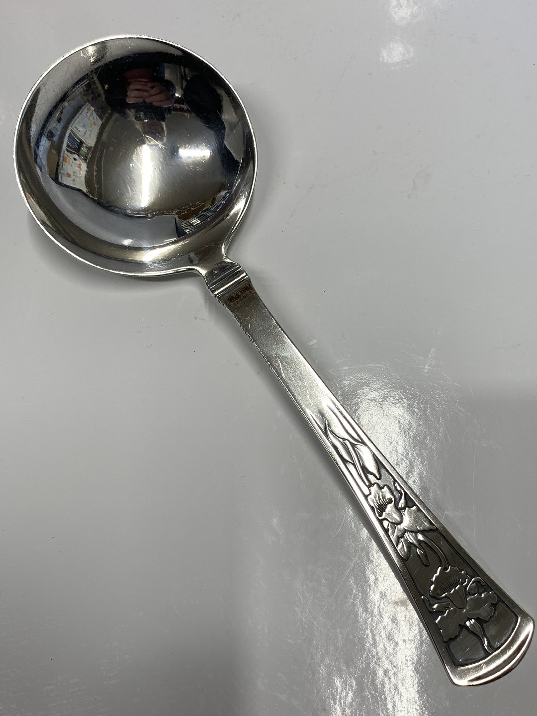 Orchide / Orkide Kartoffelske med rund laf i Sølv Længde 19,2 cm Fremstillet hos Horsens Sølvsmedie, Orkide sølvbestik 830s Pæn og pudset stand Pakket i pose