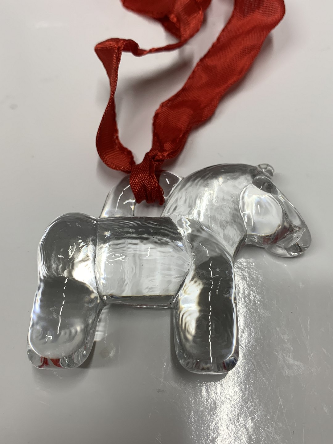 Super flot juleophæng i glas, designet af Bertil Vallien for Kosta Boda. Hæng den søde hest på juletræet, en gren, i vinduet eller ned fra loftet. Den fremstår i flot og hel stand.