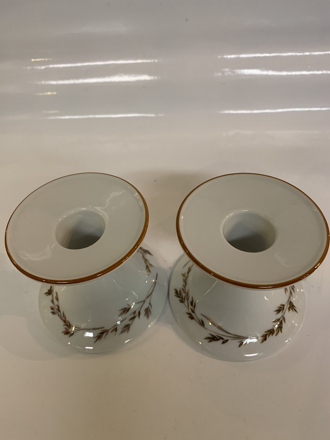Mads Stage jagtstellet Lysestager med bladranke 1 par. Diameter Bund 7,5 Top 6,5 cm. Højde 6,5 cm. Perfekt stand.