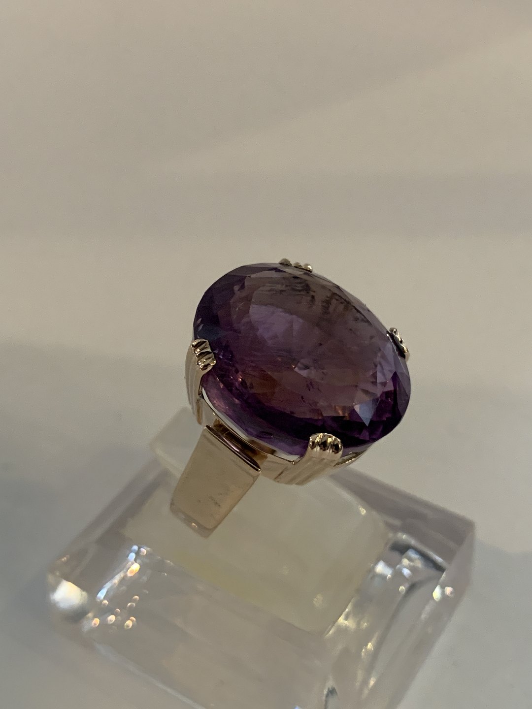 Vintage Damering med en stor ametyst 12 Karat Guld
