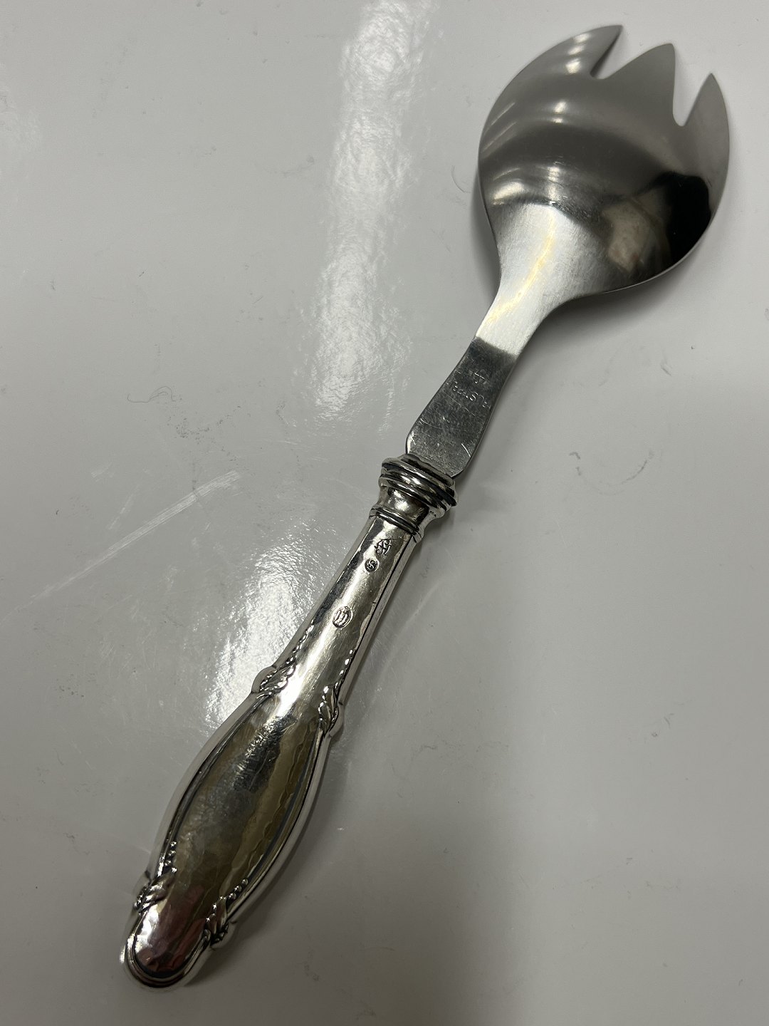 Salatgaffel Frijsenborg i Sølv med stål laf Længde 17,4 cm Pæn og velholdt stand Alt bestik pudset og pakke i pose